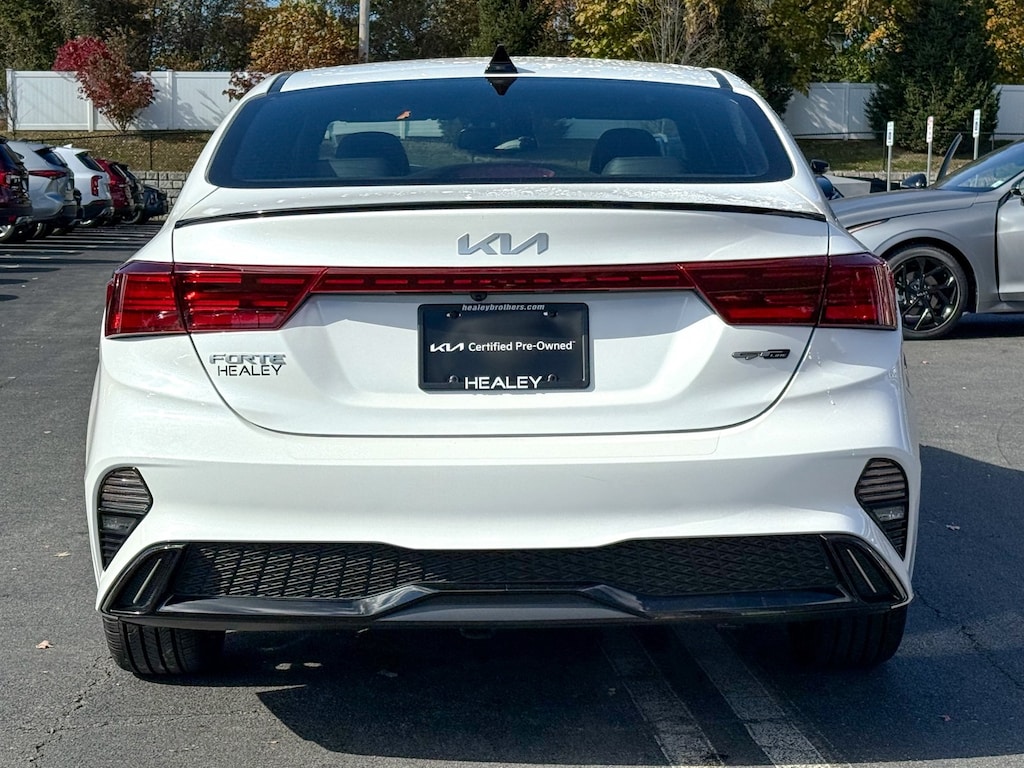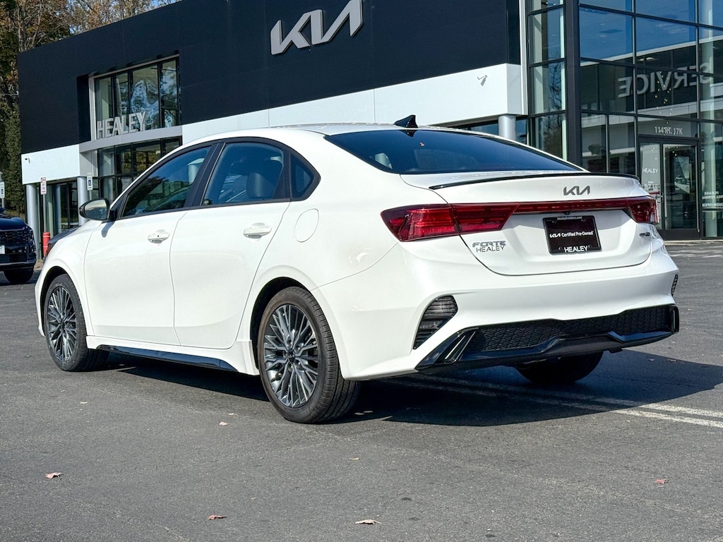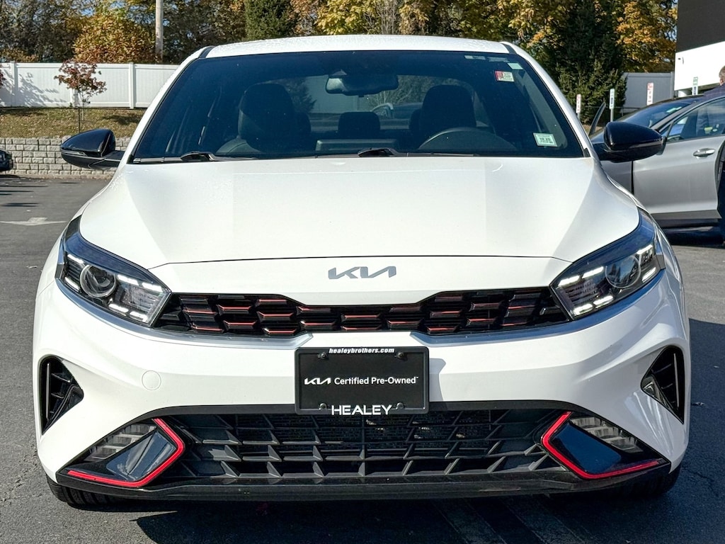 Certified. Snow White Pearl 2023 Kia Forte GT-Line 2.0L I4 MPI CVT FWD 17 x 7.0J Alloy Wheels, 4-Wheel Disc Brakes, 6 Speakers, ABS brakes, Air Conditioning, Alloy wheels, AM/FM radio: SiriusXM, Apple CarPlay & Android Auto, Auto High-beam Headlights, Automatic temperature control, Brake assist, Bumpers: body-color, Carpet Floor Mats, Cloth & SynTex Seat Trim, Delay-off headlights, Driver door bin, Driver vanity mirror, Dual front impact airbags, Dual front side impact airbags, Electronic Stability Control, Emergency communication system, Exterior Parking Camera Rear, Front anti-roll bar, Front Bucket Seats, Front Center Armrest, Front dual zone A/C, Front fog lights, Front reading lights, Front wheel independent suspension, Fully automatic headlights, Heated door mirrors, Illuminated entry, Leather Shift Knob, Leather steering wheel, Low tire pressure warning, Navigation System, Occupant sensing airbag, Outside temperature display, Overhead airbag, Overhead console, Panic alarm, Passenger door bin, Passenger vanity mirror, Power door mirrors, Power steering, Power windows, Radio data system, Radio: 10.25 Display Audio, Rear Bumper Applique, Rear seat center armrest, Rear window defroster, Remote keyless entry, Security system, Speed control, Split folding rear seat, Spoiler, Sport steering wheel, Steering wheel mounted audio controls, Tachometer, Telescoping steering wheel, Tilt steering wheel, Traction control, Trip computer, Turn signal indicator mirrors, Variably intermittent wipers.
