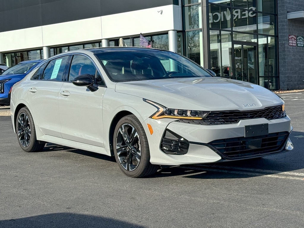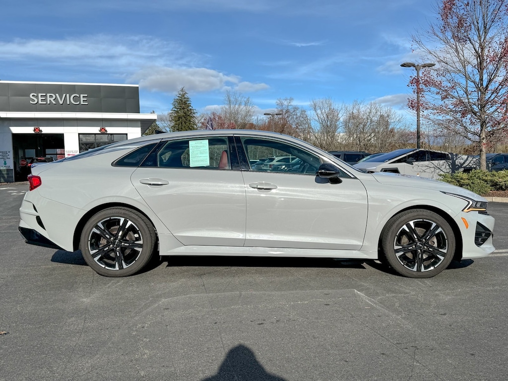 Certified. Wolf Gray 2023 Kia K5 GT-Line 1.6L I4 DGI Turbocharged DOHC 16V LEV3-ULEV70 180hp 8-Speed Automatic AWD 4-Wheel Disc Brakes, 6 Speakers, ABS brakes, Air Conditioning, Alloy wheels, AM/FM radio: SiriusXM, Apple CarPlay & Android Auto, Auto High-beam Headlights, Automatic temperature control, Brake assist, Bumpers: body-color, Carpeted Floor Mats, Cloth/SynTex Seat Trim, Delay-off headlights, Driver door bin, Driver vanity mirror, Dual front impact airbags, Dual front side impact airbags, Electronic Stability Control, Forward Collision Avoidance-Assist, Four wheel independent suspension, Front anti-roll bar, Front Bucket Seats, Front Center Armrest, Front dual zone A/C, Front fog lights, Front reading lights, Fully automatic headlights, Gloss Black Pillar & Door Frame Cover, GT-Line Panoramic Sunroof Package, GT-Line Premium Package, GT-Line Red Interior Package, Heated door mirrors, Heated Front Bucket Seats, Heated front seats, Heated steering wheel, Highway Driving Assist, Illuminated entry, Knee airbag, LED Interior Lighting, LED Projection Headlamps, Low tire pressure warning, Navigation System, Occupant sensing airbag, Outside temperature display, Overhead airbag, Overhead console, Panic alarm, Panoramic Sunroof, Passenger door bin, Passenger vanity mirror, Power door mirrors, Power driver seat, Power steering, Power windows, Radio data system, Radio: AM/FM/MP3 Audio System, Rear anti-roll bar, Rear Bumper Applique, Rear seat center armrest, Rear side impact airbag, Rear window defroster, Remote keyless entry, Security system, Smart Cruise Control w/Stop & Go, Speed control, Speed-sensing steering, Split folding rear seat, Spoiler, Sport steering wheel, Steering wheel mounted audio controls, Tachometer, Telescoping steering wheel, Tilt steering wheel, Traction control, Trip computer, Turn signal indicator mirrors, Variably intermittent wipers, Wheels: 18 Gloss Black Machined Finish Alloy.