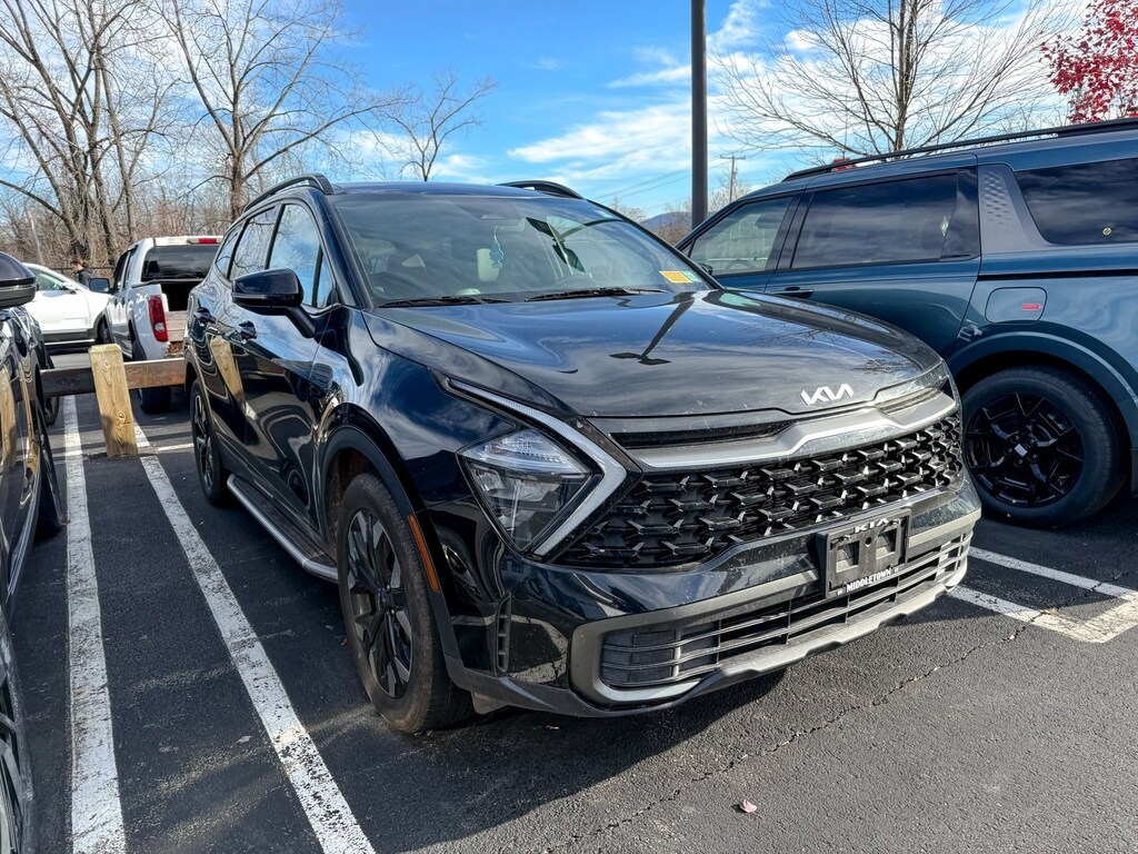 Certified. Ebony Black 2023 Kia Sportage X-Line I4 8-Speed Automatic AWD 4-Wheel Disc Brakes, 6 Speakers, ABS brakes, Air Conditioning, Alloy wheels, AM/FM radio: SiriusXM, Apple CarPlay & Android Auto, Auto High-beam Headlights, Automatic temperature control, Axle Ratio: 3.648, Brake assist, Bumpers: body-color, Cargo Mat, Cargo Tray, Carpet Floor Mats X-Line, Compass, Delay-off headlights, Driver door bin, Driver vanity mirror, Dual front impact airbags, Dual front side impact airbags, Electronic Stability Control, Emergency communication system, Four wheel independent suspension, Front anti-roll bar, Front Bucket Seats, Front Center Armrest, Front dual zone A/C, Fully automatic headlights, harman/kardon® Speakers, Heated door mirrors, Heated Front Bucket Seats, Heated front seats, Illuminated entry, Interior Lighting, Leather Shift Knob, Leather steering wheel, LED Interior Lighting, Low tire pressure warning, Navigation System, Occupant sensing airbag, Outside temperature display, Overhead airbag, Overhead console, Panic alarm, Panoramic Sunroof, Passenger door bin, Passenger vanity mirror, Power door mirrors, Power driver seat, Power steering, Power windows, Premium Leatherette Seat Trim, Radio: AM/FM/HD Audio System, Rain sensing wipers, Rear anti-roll bar, Rear seat center armrest, Rear window defroster, Rear window wiper, Remote keyless entry, Sage Green Interior Color Package, Security system, Side Steps, Smart Power Liftgate, Speed control, Speed-sensing steering, Split folding rear seat, Spoiler, Steering wheel mounted audio controls, Tachometer, Telescoping steering wheel, Tilt steering wheel, Traction control, Trip computer, Turn signal indicator mirrors, Variably intermittent wipers, Wheel Locks, Wheels: 19 Gloss Black Alloy, X-Line Premium Package.