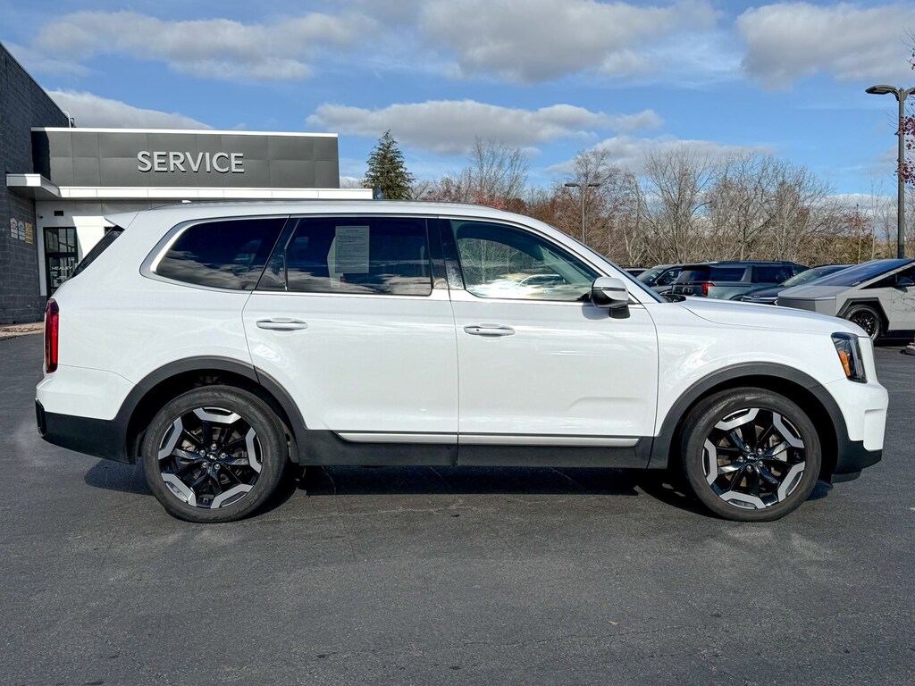 Certified. Glacial White Pearl 2023 Kia Telluride S 3.8L V6 DGI DOHC Dual CVVT 8-Speed Automatic AWD 3.648 Axle Ratio, 3rd row seats: split-bench, 4-Wheel Disc Brakes, 6 Speakers, ABS brakes, Air Conditioning, Alloy wheels, AM/FM radio: SiriusXM, Apple CarPlay & Android Auto, Auto High-beam Headlights, Automatic temperature control, Brake assist, Bumpers: body-color, Carpet Floor Mats, Delay-off headlights, Driver door bin, Driver vanity mirror, Dual front impact airbags, Dual front side impact airbags, Electronic Stability Control, Emergency communication system: 911 Connect, Exterior Parking Camera Rear, Four wheel independent suspension, Front anti-roll bar, Front Bucket Seats, Front Center Armrest, Front dual zone A/C, Front reading lights, Fully automatic headlights, Heated door mirrors, Heated Front Bucket Seats, Heated front seats, Illuminated entry, Knee airbag, Leather Shift Knob, Leather steering wheel, Low tire pressure warning, Navigation System, Occupant sensing airbag, Outside temperature display, Overhead airbag, Overhead console, Panic alarm, Passenger door bin, Passenger vanity mirror, Power door mirrors, Power driver seat, Power steering, Power Sunroof w/Sunshade, Power windows, Radio data system, Radio: AM/FM Display Audio System, Rear air conditioning, Rear anti-roll bar, Rear audio controls, Rear reading lights, Rear side impact airbag, Rear window defroster, Rear window wiper, Reclining 3rd row seat, Remote keyless entry, Roof rack: rails only, S Sunroof Package, Security system, Smart Key w/ Push Button and Remote Start, Speed control, Speed-sensing steering, Split folding rear seat, Spoiler, Steering wheel mounted audio controls, SynTex Synthetic Leather Seat Trim, Tachometer, Telescoping steering wheel, Tilt steering wheel, Traction control, Trip computer, Turn signal indicator mirrors, Variably intermittent wipers, Wheels: 20 x 7.5 Black Finish.
