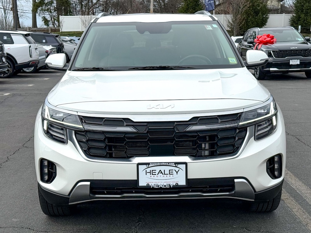 Certified. Snow White Pearl 2024 Kia Seltos SX I4 8-Speed Automatic AWD 3.510 Axle Ratio, 4-Wheel Disc Brakes, 8 Speakers, ABS brakes, Air Conditioning, Alloy wheels, AM/FM radio: SiriusXM, Apple CarPlay & Android Auto, Auto High-beam Headlights, Auto-dimming Rear-View mirror, Automatic temperature control, Brake assist, Bumpers: body-color, Cargo Net (Floor), Carpet Floor Mats, Delay-off headlights, Digital Key, Driver door bin, Driver vanity mirror, Dual front impact airbags, Dual front side impact airbags, Electronic Stability Control, Emergency communication system: 911 Connect, Exterior Parking Camera Rear, Four wheel independent suspension, Front anti-roll bar, Front Bucket Seats, Front Center Armrest, Front fog lights, Front reading lights, Fully automatic headlights, Heated door mirrors, Heated Front Bucket Seats, Heated front seats, Illuminated entry, Leather Shift Knob, Leather steering wheel, Low tire pressure warning, Midnight Green Interior Color Package, Navigation System, Occupant sensing airbag, Outside temperature display, Overhead airbag, Overhead console, Panic alarm, Passenger door bin, Passenger vanity mirror, Power door mirrors, Power driver seat, Power Liftgate, Power steering, Power windows, Radio: AM/FM/HD/Satellite Display System w/Navigation, Rear seat center armrest, Rear window defroster, Rear window wiper, Remote keyless entry, Security system, Sofino Premium Leatherette Seat Trim, Speed control, Speed-sensing steering, Split folding rear seat, Spoiler, Sport steering wheel, Steering wheel mounted audio controls, Sunroof, SX Sunroof Package, Tachometer, Telescoping steering wheel, Tilt steering wheel, Traction control, Trip computer, Turn signal indicator mirrors, Variably intermittent wipers, Ventilated Front Seats, Wheel Locks, Wheels: 18" Alloy w/Machined Finish.