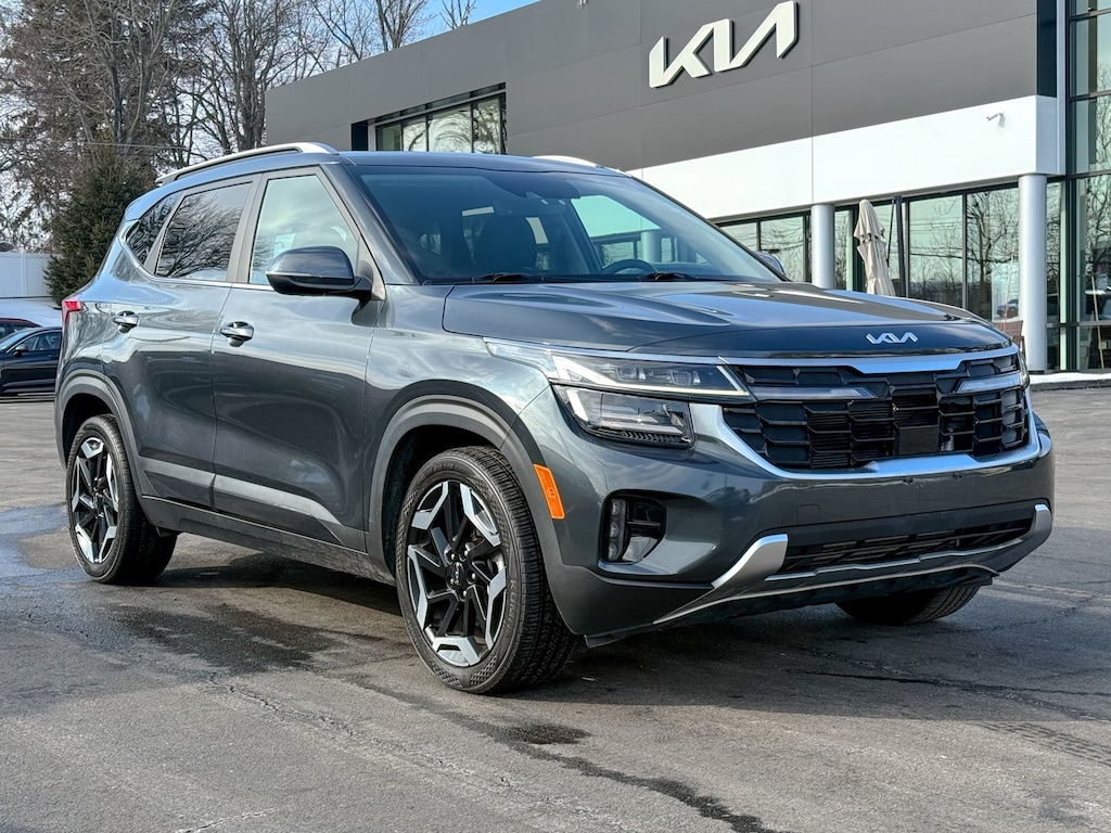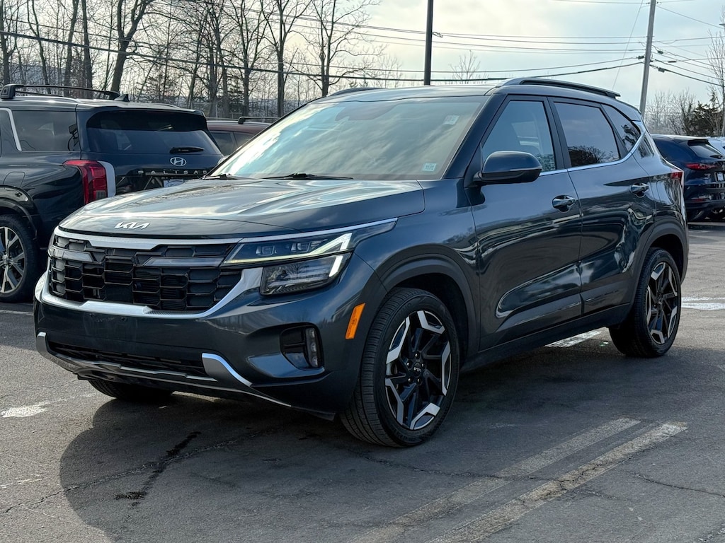 Certified. Gravity Gray 2024 Kia Seltos SX I4 8-Speed Automatic AWD 3.510 Axle Ratio, 4-Wheel Disc Brakes, 8 Speakers, ABS brakes, Air Conditioning, Alloy wheels, AM/FM radio: SiriusXM, Apple CarPlay & Android Auto, Auto High-beam Headlights, Auto-dimming Rear-View mirror, Automatic temperature control, Brake assist, Bumpers: body-color, Carpet Floor Mats, Delay-off headlights, Digital Key, Driver door bin, Driver vanity mirror, Dual front impact airbags, Dual front side impact airbags, Electronic Stability Control, Emergency communication system: 911 Connect, Exterior Parking Camera Rear, Four wheel independent suspension, Front anti-roll bar, Front Bucket Seats, Front Center Armrest, Front fog lights, Front reading lights, Fully automatic headlights, Heated door mirrors, Heated Front Bucket Seats, Heated front seats, Illuminated entry, Leather Shift Knob, Leather steering wheel, Low tire pressure warning, Navigation System, Occupant sensing airbag, Outside temperature display, Overhead airbag, Overhead console, Panic alarm, Passenger door bin, Passenger vanity mirror, Power door mirrors, Power driver seat, Power Liftgate, Power steering, Power windows, Radio: AM/FM/HD/Satellite Display System w/Navigation, Rear seat center armrest, Rear window defroster, Rear window wiper, Remote keyless entry, Security system, Sofino Premium Leatherette Seat Trim, Speed control, Speed-sensing steering, Split folding rear seat, Spoiler, Sport steering wheel, Steering wheel mounted audio controls, Sunroof, SX Sunroof Package, Tachometer, Telescoping steering wheel, Tilt steering wheel, Traction control, Trip computer, Turn signal indicator mirrors, Variably intermittent wipers, Ventilated Front Seats, Wheels: 18" Alloy w/Machined Finish.