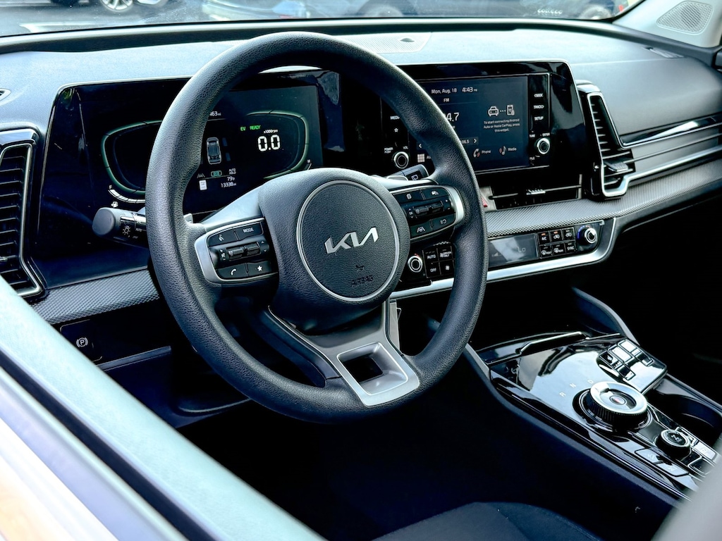 Certified. Snow White Pearl 2024 Kia Sportage Hybrid LX I4 6-Speed Automatic AWD 4-Wheel Disc Brakes, 6 Speakers, ABS brakes, Air Conditioning, Alloy wheels, AM/FM radio, Auto High-beam Headlights, Automatic temperature control, Axle Ratio: 3.32, Brake assist, Bumpers: body-color, Carpet Floor Mats, Cloth Seat Trim, Delay-off headlights, Driver door bin, Driver vanity mirror, Dual front impact airbags, Dual front side impact airbags, Electronic Stability Control, Four wheel independent suspension, Front anti-roll bar, Front Bucket Seats, Front Center Armrest, Front dual zone A/C, Fully automatic headlights, Heated door mirrors, Heated Front Bucket Seats, Heated front seats, Illuminated entry, Low tire pressure warning, Occupant sensing airbag, Outside temperature display, Overhead airbag, Overhead console, Panic alarm, Passenger door bin, Passenger vanity mirror, Power door mirrors, Power steering, Power windows, Radio: AM/FM/HD Audio System, Rain sensing wipers, Rear anti-roll bar, Rear seat center armrest, Rear side impact airbag, Rear window defroster, Rear window wiper, Remote keyless entry, Security system, Speed control, Speed-sensing steering, Split folding rear seat, Spoiler, Steering wheel mounted audio controls, Tachometer, Telescoping steering wheel, Tilt steering wheel, Traction control, Trip computer, Variably intermittent wipers, Wheels: 17 x 7J Machined-Finished Aero Alloy.