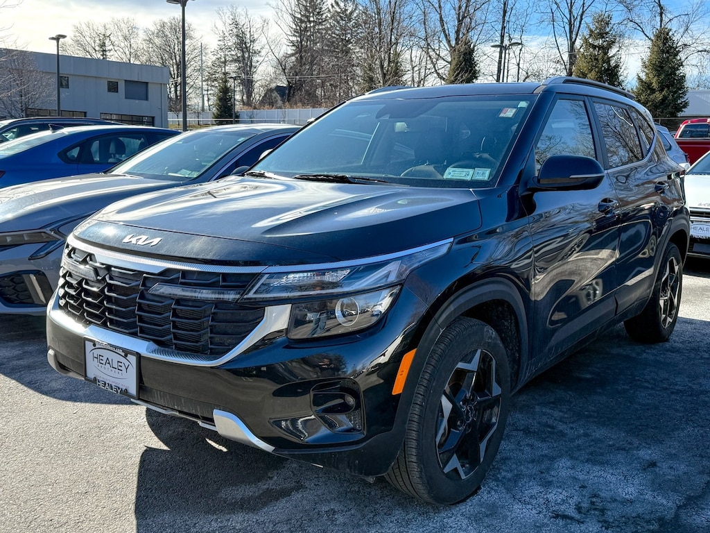 Certified. Fusion Black 2025 Kia Seltos EX 2.0L I4 MPI CVT AWD 4-Wheel Disc Brakes, 6 Speakers, ABS brakes, Air Conditioning, Alloy wheels, AM/FM radio: SiriusXM, Apple CarPlay & Android Auto, Artificial Leather Seat Trim, Auto High-beam Headlights, Automatic temperature control, Brake assist, Bumpers: body-color, Cargo Net (Floor), Carpet Floor Mats, Delay-off headlights, Driver door bin, Driver vanity mirror, Dual front impact airbags, Dual front side impact airbags, Electronic Stability Control, Emergency communication system: 911 Connect, EX Sunroof Package, Exterior Parking Camera Rear, Four wheel independent suspension, Front anti-roll bar, Front Bucket Seats, Front Center Armrest, Front fog lights, Front reading lights, Fully automatic headlights, Heated door mirrors, Heated Front Bucket Seats (3-Steps), Heated front seats, Illuminated entry, Leather Shift Knob, Leather steering wheel, Low tire pressure warning, Navigation System, Occupant sensing airbag, Outside temperature display, Overhead airbag, Overhead console, Panic alarm, Passenger door bin, Passenger vanity mirror, Power door mirrors, Power driver seat, Power Liftgate, Power steering, Power Sunroof, Power windows, Radio: AM/FM/HD/Satellite Display System w/Navigation, Rear seat center armrest, Rear window defroster, Rear window wiper, Remote keyless entry, Security system, Speed control, Speed-sensing steering, Split folding rear seat, Spoiler, Steering wheel mounted audio controls, Tachometer, Telescoping steering wheel, Tilt steering wheel, Traction control, Trip computer, Turn signal indicator mirrors, Variably intermittent wipers, Wheels: 17 Alloy w/Machined Finished.
