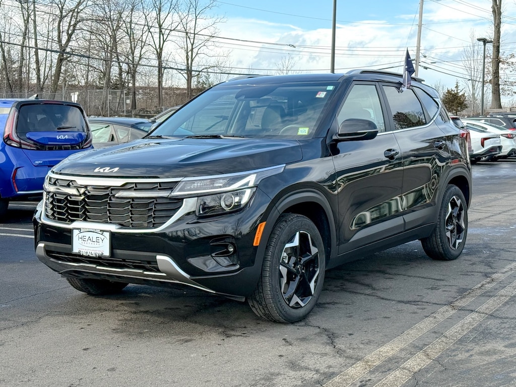 Certified. Fusion Black 2025 Kia Seltos EX 2.0L I4 MPI CVT AWD 4-Wheel Disc Brakes, 6 Speakers, ABS brakes, Air Conditioning, Alloy wheels, AM/FM radio: SiriusXM, Apple CarPlay & Android Auto, Artificial Leather Seat Trim, Auto High-beam Headlights, Automatic temperature control, Brake assist, Bumpers: body-color, Cargo Net (Floor), Carpet Floor Mats, Delay-off headlights, Driver door bin, Driver vanity mirror, Dual front impact airbags, Dual front side impact airbags, Electronic Stability Control, Emergency communication system: 911 Connect, EX Sunroof Package, Exterior Parking Camera Rear, Four wheel independent suspension, Front anti-roll bar, Front Bucket Seats, Front Center Armrest, Front fog lights, Front reading lights, Fully automatic headlights, Heated door mirrors, Heated Front Bucket Seats (3-Steps), Heated front seats, Illuminated entry, Leather Shift Knob, Leather steering wheel, Low tire pressure warning, Navigation System, Occupant sensing airbag, Outside temperature display, Overhead airbag, Overhead console, Panic alarm, Passenger door bin, Passenger vanity mirror, Power door mirrors, Power driver seat, Power Liftgate, Power steering, Power Sunroof, Power windows, Radio: AM/FM/HD/Satellite Display System w/Navigation, Rear seat center armrest, Rear window defroster, Rear window wiper, Remote keyless entry, Security system, Speed control, Speed-sensing steering, Split folding rear seat, Spoiler, Steering wheel mounted audio controls, Tachometer, Telescoping steering wheel, Tilt steering wheel, Traction control, Trip computer, Turn signal indicator mirrors, Variably intermittent wipers, Wheel Locks, Wheels: 17 Alloy w/Machined Finished.