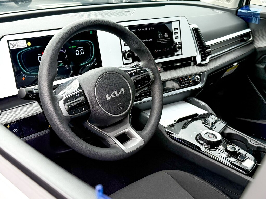 Snow White Pearl 2025 Kia Sportage Hybrid LX AWD 6-Speed Automatic I4 4-Wheel Disc Brakes, 6 Speakers, ABS brakes, Air Conditioning, Alloy wheels, AM/FM radio, Auto High-beam Headlights, Automatic temperature control, Brake assist, Bumpers: body-color, Cargo Mat, Carpet Floor Mats, Cloth Seat Trim, Delay-off headlights, Driver door bin, Driver vanity mirror, Dual front impact airbags, Dual front side impact airbags, Electronic Stability Control, Four wheel independent suspension, Front anti-roll bar, Front Bucket Seats, Front Center Armrest, Front dual zone A/C, Fully automatic headlights, Heated door mirrors, Heated Front Bucket Seats, Heated front seats, Illuminated entry, Low tire pressure warning, Occupant sensing airbag, Outside temperature display, Overhead airbag, Overhead console, Panic alarm, Passenger door bin, Passenger vanity mirror, Power door mirrors, Power steering, Power windows, Radio: AM/FM/HD Audio System, Rain sensing wipers, Rear anti-roll bar, Rear seat center armrest, Rear side impact airbag, Rear window defroster, Rear window wiper, Remote keyless entry, Security system, Speed control, Speed-sensing steering, Split folding rear seat, Spoiler, Steering wheel mounted audio controls, Tachometer, Telescoping steering wheel, Tilt steering wheel, Traction control, Trip computer, Variably intermittent wipers, Wheels: 17 x 7J Aero Alloy.