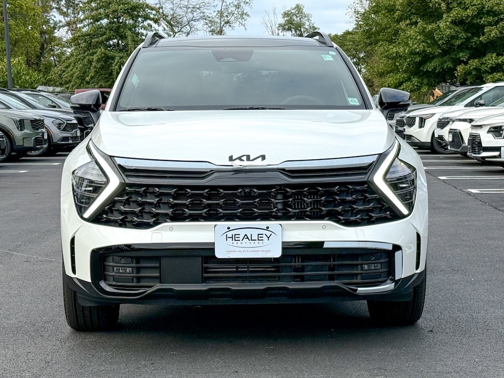Snow White Pearl 2025 Kia Sportage Plug-In Hybrid X-Line Prestige AWD 6-Speed Automatic I4 4-Wheel Disc Brakes, 8 Speakers, ABS brakes, Air Conditioning, Alloy wheels, AM/FM radio: SiriusXM, Apple CarPlay & Android Auto, Auto High-beam Headlights, Automatic temperature control, Brake assist, Bumpers: body-color, Cargo Mat, Carpeted Floor Mats X-Line, Compass, Delay-off headlights, Driver door bin, Driver vanity mirror, Dual front impact airbags, Dual front side impact airbags, Electronic Stability Control, Emergency communication system, Four wheel independent suspension, Front anti-roll bar, Front Bucket Seats, Front Center Armrest, Front dual zone A/C, Front fog lights, Front reading lights, Fully automatic headlights, harman/kardon® Speakers, Heated & Ventilated Front Bucket Seats, Heated door mirrors, Heated front seats, Heated steering wheel, Illuminated entry, Leather steering wheel, Low tire pressure warning, Memory seat, Navigation System, Occupant sensing airbag, Outside temperature display, Overhead airbag, Overhead console, Panic alarm, Passenger door bin, Passenger vanity mirror, Power door mirrors, Power driver seat, Power Liftgate, Power moonroof, Power passenger seat, Power steering, Power windows, Premium SynTex Leatherette Seat Trim, Radio: AM/FM/HD Premium Audio System, Rain sensing wipers, Rear anti-roll bar, Rear reading lights, Rear seat center armrest, Rear side impact airbag, Rear window defroster, Rear window wiper, Remote keyless entry, Security system, Speed control, Speed-sensing steering, Split folding rear seat, Spoiler, Steering wheel mounted audio controls, Tachometer, Telescoping steering wheel, Tilt steering wheel, Traction control, Trip computer, Turn signal indicator mirrors, Variably intermittent wipers, Ventilated front seats, Wheels: 7.5J x 19 Gloss Black Alloy.