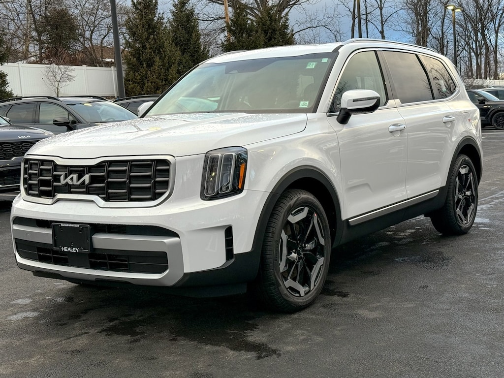 Glacial White Pearl 2025 Kia Telluride S AWD 8-Speed Automatic 3.8L V6 DOHC 3rd row seats: split-bench, 4-Wheel Disc Brakes, 6 Speakers, ABS brakes, Air Conditioning, Alloy wheels, AM/FM radio: SiriusXM, Apple CarPlay & Android Auto, Auto High-beam Headlights, Automatic temperature control, Brake assist, Bumpers: body-color, Carpeted Floor Mats, Delay-off headlights, Driver door bin, Driver vanity mirror, Dual front impact airbags, Dual front side impact airbags, Electronic Stability Control, Emergency communication system: 911 Connect, Exterior Parking Camera Rear, Four wheel independent suspension, Front anti-roll bar, Front Bucket Seats, Front Center Armrest, Front dual zone A/C, Front reading lights, Fully automatic headlights, Heated door mirrors, Heated Front Bucket Seats, Heated front seats, Hybrid Cargo Net, Illuminated entry, Knee airbag, Leather Shift Knob, Leather steering wheel, Low tire pressure warning, Navigation System, Occupant sensing airbag, Outside temperature display, Overhead airbag, Overhead console, Panic alarm, Passenger door bin, Passenger vanity mirror, Power door mirrors, Power driver seat, Power Liftgate, Power moonroof, Power steering, Power windows, Radio data system, Radio: AM/FM Display Audio System, Rear air conditioning, Rear anti-roll bar, Rear audio controls, Rear reading lights, Rear side impact airbag, Rear window defroster, Rear window wiper, Reclining 3rd row seat, Remote keyless entry, Security system, Speed control, Speed-sensing steering, Split folding rear seat, Spoiler, Steering wheel mounted audio controls, SynTex Synthetic Leather Seat Trim, Tachometer, Telescoping steering wheel, Tilt steering wheel, Traction control, Trip computer, Turn signal indicator mirrors, Variably intermittent wipers, Wheels: 20" x 7.5" Black Finish.
