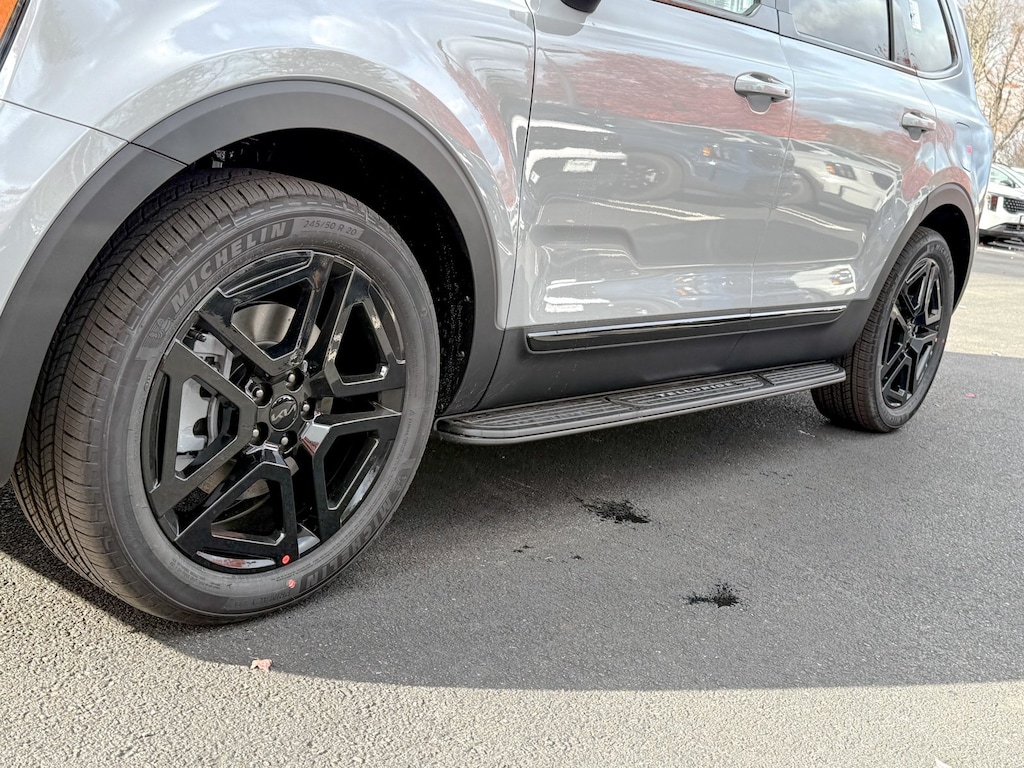 Wolf Gray 2025 Kia Telluride EX X-Line AWD 8-Speed Automatic 3.8L V6 DOHC 3rd row seats: split-bench, 4-Wheel Disc Brakes, 6 Speakers, ABS brakes, Air Conditioning, Alloy wheels, AM/FM radio: SiriusXM, Apple CarPlay & Android Auto, Auto High-beam Headlights, Auto-dimming Rear-View mirror, Auto-leveling suspension, Automatic temperature control, Black Side Step Bars, Brake assist, Bumpers: body-color, Carpeted Floor Mats, Compass, Delay-off headlights, Driver door bin, Driver vanity mirror, Dual front impact airbags, Dual front side impact airbags, Electronic Stability Control, Emergency communication system: 911 Connect, Exterior Parking Camera Rear, Four wheel independent suspension, Front anti-roll bar, Front Bucket Seats, Front Center Armrest, Front dual zone A/C, Front reading lights, Fully automatic headlights, Heated & Ventilated Front Bucket Seats, Heated door mirrors, Heated front seats, Heated steering wheel, Illuminated entry, Knee airbag, Leather Seat Trim, Leather Shift Knob, Leather steering wheel, Low tire pressure warning, Navigation System, Occupant sensing airbag, Outside temperature display, Overhead airbag, Overhead console, Panic alarm, Passenger door bin, Passenger vanity mirror, Power door mirrors, Power driver seat, Power Liftgate, Power moonroof, Power passenger seat, Power steering, Power windows, Radio data system, Radio: AM/FM Display Audio System, Rear air conditioning, Rear anti-roll bar, Rear audio controls, Rear reading lights, Rear side impact airbag, Rear window defroster, Rear window wiper, Reclining 3rd row seat, Remote keyless entry, Security system, Speed control, Speed-sensing steering, Split folding rear seat, Spoiler, Steering wheel mounted audio controls, Tachometer, Telescoping steering wheel, Terracotta Interior Color Package, Tilt steering wheel, Traction control, Trip computer, Turn signal indicator mirrors, Variably intermittent wipers, Ventilated front seats, Wheels: 20 x 7.5 Black Finish X-LINE Exclusive.