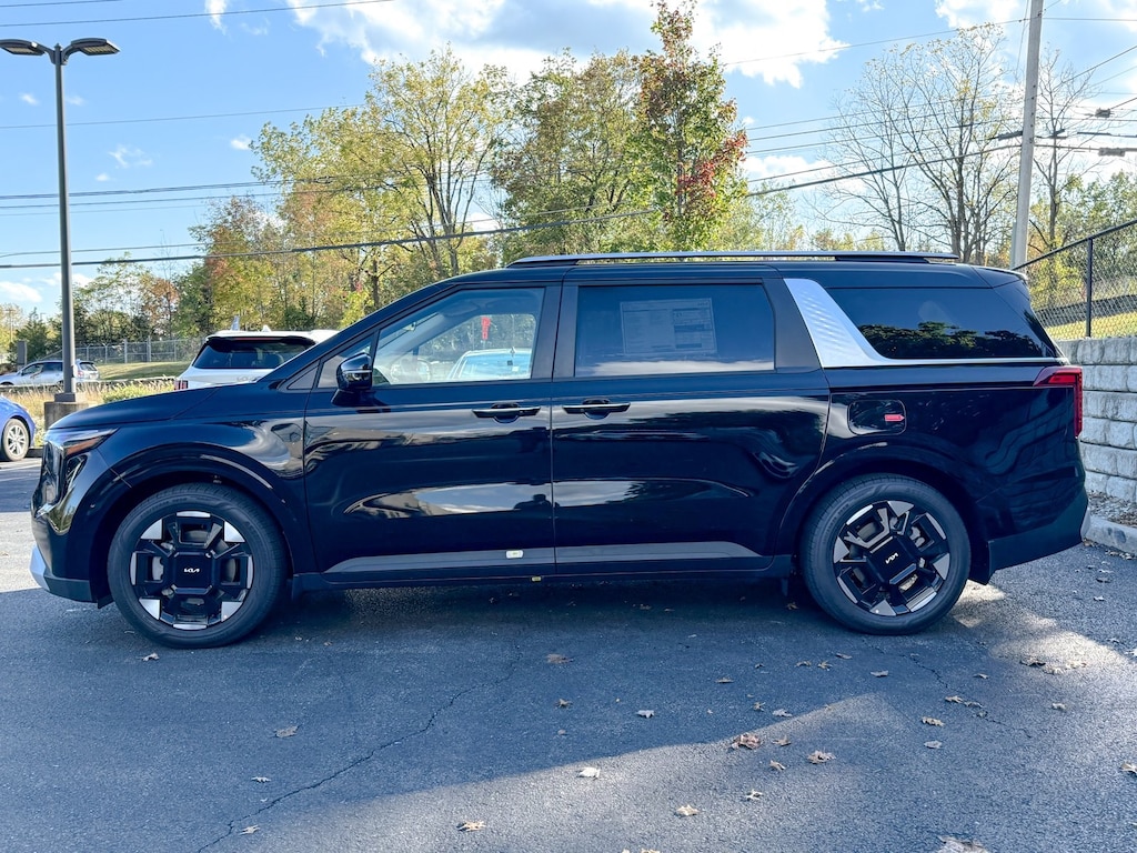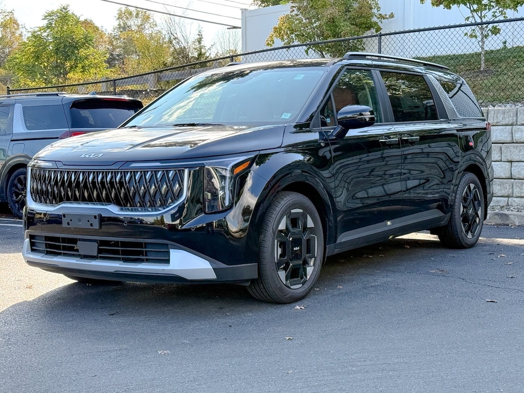 Aurora Black Pearl 2026 Kia Carnival EX FWD 8-Speed Automatic V6 3.51 Axle Ratio, 3rd row seats: split-bench, 4-Wheel Disc Brakes, 8 Speakers, ABS brakes, Air Conditioning, All Weather Floor Mats (8-Passenger), Alloy wheels, AM/FM radio: SiriusXM, Apple CarPlay & Android Auto, Artificial Leather Seat Trim, Auto High-beam Headlights, Automatic temperature control, Brake assist, Bumpers: body-color, Carpeted Floor Mats (8-Passenger), Compass, Delay-off headlights, Driver door bin, Driver vanity mirror, Dual front impact airbags, Dual front side impact airbags, Electronic Stability Control, Emergency communication system, Exterior Parking Camera Rear, Four wheel independent suspension, Front anti-roll bar, Front Bucket Seats, Front Center Armrest, Front dual zone A/C, Front reading lights, Fully automatic headlights, Heated door mirrors, Heated Front Bucket Seats, Heated front seats, Illuminated entry, Knee airbag, Leather Shift Knob, Leather steering wheel, Low tire pressure warning, Memory seat, Mud Guards, Navigation System, Occupant sensing airbag, Outside temperature display, Overhead airbag, Overhead console, Panic alarm, Passenger door bin, Passenger vanity mirror, Power door mirrors, Power driver seat, Power Liftgate, Power passenger seat, Power steering, Power windows, Radio: AM/FM/HD Audio System, Rear air conditioning, Rear anti-roll bar, Rear reading lights, Rear window defroster, Rear window wiper, Reclining 3rd row seat, Remote keyless entry, Security system, Speed control, Speed-sensing steering, Split folding rear seat, Spoiler, Steering wheel mounted audio controls, Tachometer, Telescoping steering wheel, Tilt steering wheel, Traction control, Trip computer, Turn signal indicator mirrors, Variably intermittent wipers, Wheels: 7.5J x 19 Machine-Finished Alloy.