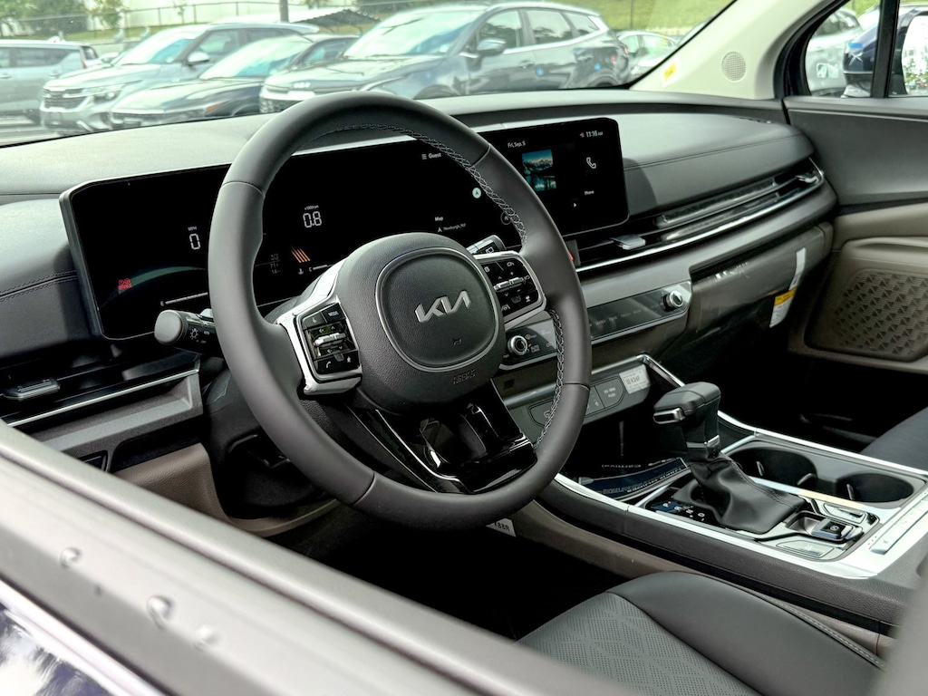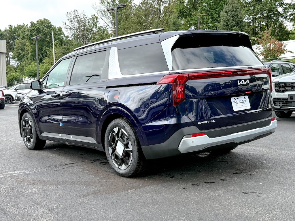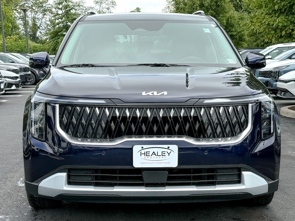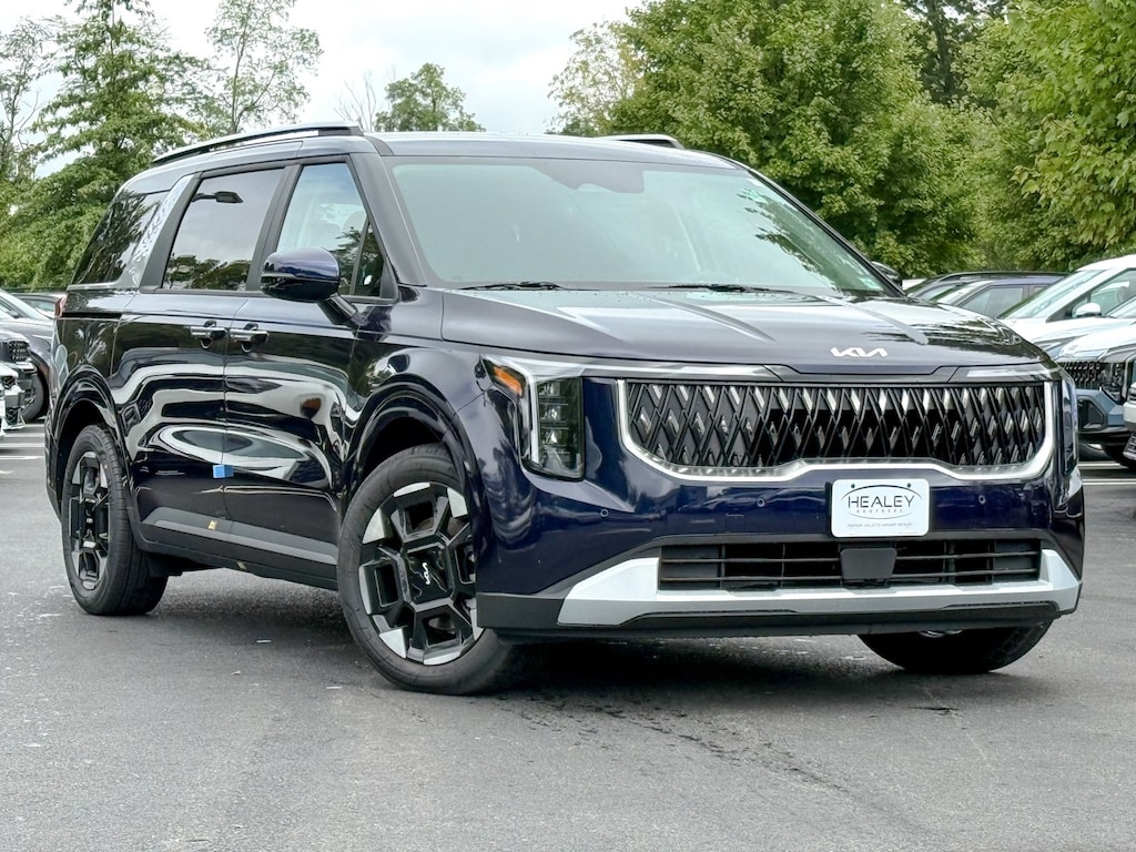 Deep Chroma Blue 2026 Kia Carnival EX FWD 8-Speed Automatic V6 3.51 Axle Ratio, 3rd row seats: split-bench, 4-Wheel Disc Brakes, 8 Speakers, ABS brakes, Air Conditioning, All Weather Floor Mats (8-Passenger), Alloy wheels, AM/FM radio: SiriusXM, Apple CarPlay & Android Auto, Artificial Leather Seat Trim, Auto High-beam Headlights, Automatic temperature control, Brake assist, Bumpers: body-color, Cargo Mat, Carpeted Floor Mats (8-Passenger), Compass, Delay-off headlights, Driver door bin, Driver vanity mirror, Dual front impact airbags, Dual front side impact airbags, Electronic Stability Control, Emergency communication system, Exterior Parking Camera Rear, Four wheel independent suspension, Front anti-roll bar, Front Bucket Seats, Front Center Armrest, Front dual zone A/C, Front reading lights, Fully automatic headlights, Heated door mirrors, Heated Front Bucket Seats, Heated front seats, Illuminated entry, Knee airbag, Leather Shift Knob, Leather steering wheel, Low tire pressure warning, Memory seat, Navigation System, Occupant sensing airbag, Outside temperature display, Overhead airbag, Overhead console, Panic alarm, Passenger door bin, Passenger vanity mirror, Power door mirrors, Power driver seat, Power Liftgate, Power passenger seat, Power steering, Power windows, Radio: AM/FM/HD Audio System, Rear air conditioning, Rear anti-roll bar, Rear reading lights, Rear window defroster, Rear window wiper, Reclining 3rd row seat, Remote keyless entry, Security system, Speed control, Speed-sensing steering, Split folding rear seat, Spoiler, Steering wheel mounted audio controls, Tachometer, Telescoping steering wheel, Tilt steering wheel, Traction control, Trip computer, Turn signal indicator mirrors, Variably intermittent wipers, Wheels: 7.5J x 19 Machine-Finished Alloy.