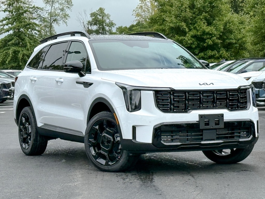 Gwp 2026 Kia Sorento EX AWD 8 Speed Dual Clutch 2.5L I4 DGI Turbocharged DOHC 16V LEV3-SULEV30 281hp 3rd row seats: split-bench, 4-Wheel Disc Brakes, 6 Speakers, ABS brakes, Air Conditioning, Alloy wheels, AM/FM radio: SiriusXM, Apple CarPlay & Android Auto, Auto High-beam Headlights, Auto-dimming Rear-View mirror, Automatic temperature control, Brake assist, Bumpers: body-color, Carpeted Floor Mats, Delay-off headlights, Driver door bin, Driver vanity mirror, Dual front impact airbags, Dual front side impact airbags, Electronic Stability Control, Emergency communication system: 911 Connect, Exterior Parking Camera Rear, Four wheel independent suspension, Front anti-roll bar, Front Bucket Seats, Front Center Armrest, Front dual zone A/C, Front fog lights, Front reading lights, Fully automatic headlights, Heated door mirrors, Heated Front Bucket Seats, Heated front seats, Illuminated entry, Knee airbag, Leather Shift Knob, Leather steering wheel, Low tire pressure warning, Navigation System, Occupant sensing airbag, Outside temperature display, Overhead airbag, Overhead console, Panic alarm, Passenger door bin, Passenger vanity mirror, Power door mirrors, Power driver seat, Power Liftgate, Power passenger seat, Power steering, Power windows, Radio data system, Radio: AM/FM Standard Sound System, Rear anti-roll bar, Rear reading lights, Rear seat center armrest, Rear side impact airbag, Rear window defroster, Rear window wiper, Remote keyless entry, Security system, Speed control, Speed-sensing steering, Split folding rear seat, Spoiler, Steering wheel mounted audio controls, SynTex Artificial Leather Seat Trim, Tachometer, Telescoping steering wheel, Tilt steering wheel, Traction control, Trip computer, Turn signal indicator mirrors, Variably intermittent wipers, Wheels: 20 Machine-Finished Gloss Black Alloy.