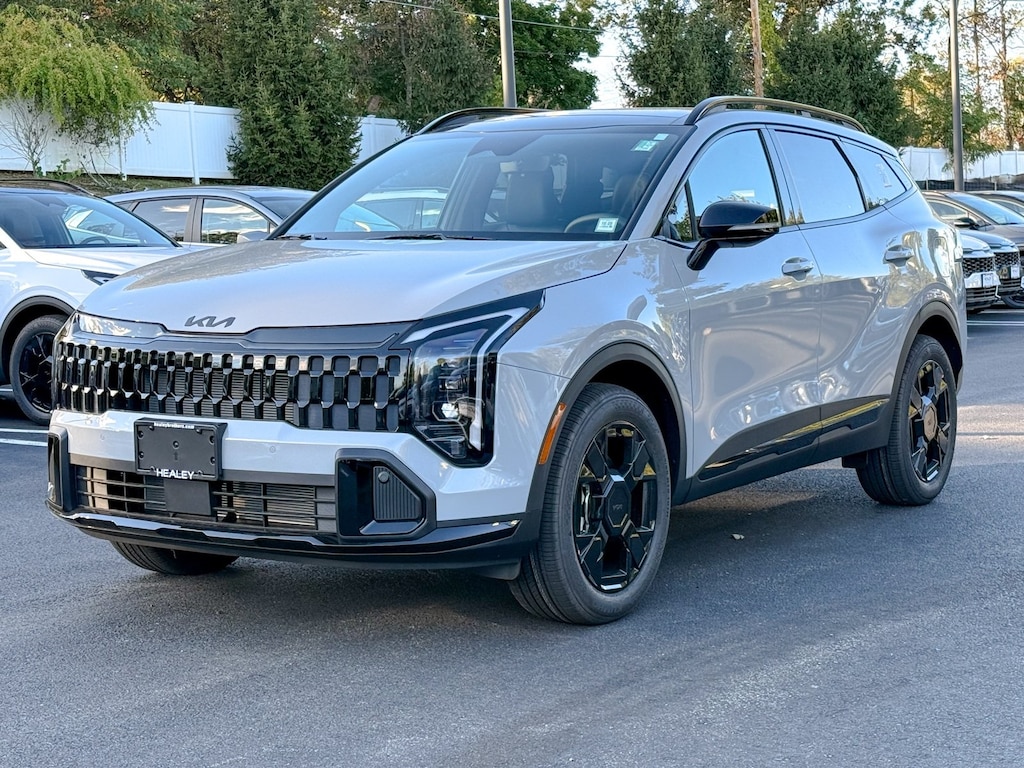 Wolf Gray 2026 Kia Sportage X-Line AWD 8-Speed Automatic I4 4-Wheel Disc Brakes, 6 Speakers, ABS brakes, Air Conditioning, Alloy wheels, Auto High-beam Headlights, Automatic temperature control, Brake assist, Bumpers: body-color, Carpeted Floor Mats, Delay-off headlights, Driver door bin, Driver vanity mirror, Dual front impact airbags, Dual front side impact airbags, Electronic Stability Control, Emergency communication system: Kia Connect (includes 1 year free trial), Four wheel independent suspension, Front anti-roll bar, Front Bucket Seats, Front Center Armrest, Front dual zone A/C, Fully automatic headlights, Heated door mirrors, Heated Front Bucket Seats, Heated front seats, Illuminated entry, Leather steering wheel, LED Interior Lighting, Low tire pressure warning, Occupant sensing airbag, Outside temperature display, Overhead airbag, Overhead console, Panic alarm, Panoramic Sunroof, Passenger door bin, Passenger vanity mirror, Power door mirrors, Power driver seat, Power steering, Power windows, Radio: AM/FM/HD Audio System, Rain sensing wipers, Rear anti-roll bar, Rear seat center armrest, Rear side impact airbag, Rear window defroster, Rear window wiper, Remote keyless entry, Security system, Smart Power Liftgate, Speed control, Speed-sensing steering, Split folding rear seat, Spoiler, Steering wheel mounted audio controls, SynTex Premium Leatherette Seat Trim, Tachometer, Telescoping steering wheel, Tilt steering wheel, Traction control, Trip computer, Turn signal indicator mirrors, Variably intermittent wipers, Wheels: 19 x 7.5J Gloss Black Alloy, X-Line Premium Package.