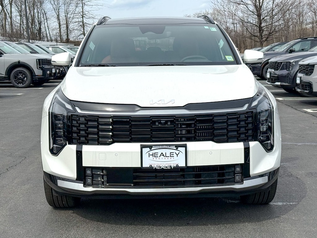 Snow White Pearl 2026 Kia Sportage Hybrid SX-Prestige AWD 6-Speed Automatic 1.6L Turbo GDI 4-Cylinder 4-Wheel Disc Brakes, 8 Speakers, ABS brakes, Air Conditioning, Alloy wheels, AM/FM radio: SiriusXM, Auto High-beam Headlights, Automatic temperature control, Brake assist, Bumpers: body-color, Carmine Red Interior Color Package, Carpet Cargo Mat with Seatback Protection, Carpeted Floor Mats, Compass, Delay-off headlights, Driver door bin, Driver vanity mirror, Dual front impact airbags, Dual front side impact airbags, Electronic Stability Control, Emergency communication system, Four wheel independent suspension, Front anti-roll bar, Front Bucket Seats, Front Center Armrest, Front dual zone A/C, Front fog lights, Front reading lights, Fully automatic headlights, harman/kardon® Speakers, Heated and Ventilated Front Bucket Seats, Heated door mirrors, Heated front seats, Heated steering wheel, Illuminated entry, Leather steering wheel, Low tire pressure warning, Memory seat, Mud Guards, Navigation System, Occupant sensing airbag, Outside temperature display, Overhead airbag, Overhead console, Panic alarm, Passenger door bin, Passenger vanity mirror, Power door mirrors, Power driver seat, Power Liftgate, Power moonroof, Power passenger seat, Power steering, Power windows, Radio: AM/FM/HD Premium Audio System, Rain sensing wipers, Rear anti-roll bar, Rear reading lights, Rear seat center armrest, Rear side impact airbag, Rear window defroster, Rear window wiper, Remote keyless entry, Security system, Speed control, Speed-sensing steering, Split folding rear seat, Spoiler, Steering wheel mounted audio controls, Syntex Premium Leatherette Seat Trim, Tachometer, Telescoping steering wheel, Tilt steering wheel, Traction control, Trip computer, Turn signal indicator mirrors, Variably intermittent wipers, Ventilated front seats, Wheels: 19" x 7.5J Alloy.