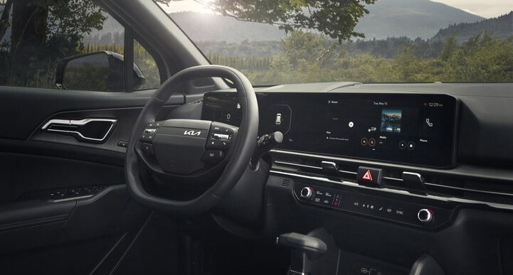 Inside the 2026 Kia Sportage SUV, you'll find a spacious and well-appointed interior with room for up to five passengers. The cabin features high-quality materials and a modern design, with available leather seating and a panoramic sunroof for a premium feel. The Sportage also offers a wealth of advanced technology features, including a 12.3-inch touchscreen infotainment system with navigation, wireless Apple CarPlay® and Android Auto™, and a Harman Kardon® premium audio system.