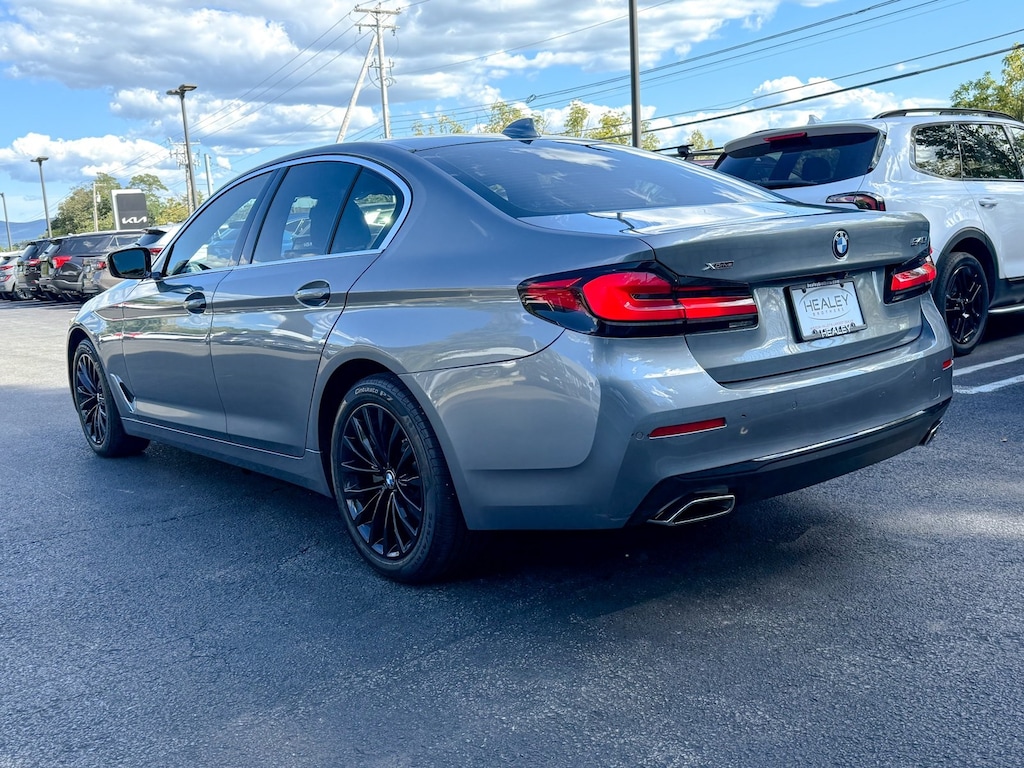 Bluestone Metallic 2021 BMW 5 Series 540i xDrive 3.0L I6 Turbocharged DOHC 24V LEV3-ULEV70 8-Speed Automatic Sport AWD 12 Speakers, 4-Wheel Disc Brakes, ABS brakes, Air Conditioning, Alloy wheels, AM/FM radio: SiriusXM with 360L, Apple CarPlay & Android Auto Compatibility, Auto High-beam Headlights, Auto tilt-away steering wheel, Auto-dimming door mirrors, Auto-dimming Rear-View mirror, Automatic temperature control, BMW Assist eCall, BMW TeleServices, Brake assist, Bumpers: body-color, Connected Package Pro, ConnectedDrive Services, Delay-off headlights, Driver door bin, Driver vanity mirror, Dual front impact airbags, Dual front side impact airbags, Electronic Stability Control, Emergency communication system: BMW Assist eCall, Enhanced USB & Bluetooth, Enhanced USB & Bluetooth (ZEB), Exterior Parking Camera Rear, Four wheel independent suspension, Front anti-roll bar, Front Bucket Seats, Front Center Armrest, Front dual zone A/C, Front reading lights, Fully automatic headlights, Garage door transmitter, Genuine wood console insert, Genuine wood dashboard insert, Genuine wood door panel insert, Gesture Control, harman/kardon Surround Sound System, Head-Up Display, Heated door mirrors, Heated Front Seats, Heated Steering Wheel, Hi-Fi Sound System, Illuminated entry, Leather Shift Knob, Leather steering wheel, Live Cockpit Pro w/Navi, Low tire pressure warning, Lumbar Support, Memory seat, Navigation System, Occupant sensing airbag, Outside temperature display, Overhead airbag, Panic alarm, Passenger door bin, Passenger vanity mirror, Perforated Sensatec Upholstery, Power door mirrors, Power driver seat, Power Front Seats, Power moonroof, Power passenger seat, Power steering, Power Tailgate, Power windows, Premium Package, Radio data system, Radio: AM/FM Audio System, Rain sensing wipers, Rear anti-roll bar, Rear reading lights, Rear seat center armrest, Rear window defroster, Remote Engine Start, Remote keyless entry, Security system, SiriusXM w/360L, Speed control, Speed-sensing steering, Speed-Sensitive Wipers, Split folding rear seat, Sport Seats, Sport steering wheel, Steering wheel memory, Steering wheel mounted audio controls, Tachometer, Telescoping steering wheel, Tilt steering wheel, Traction control, Trip computer, Turn signal indicator mirrors, Variably intermittent wipers, Wheels: 18 x 8 W-Spoke Reflex Silver, WiFi Hotspot, Wireless Charging.