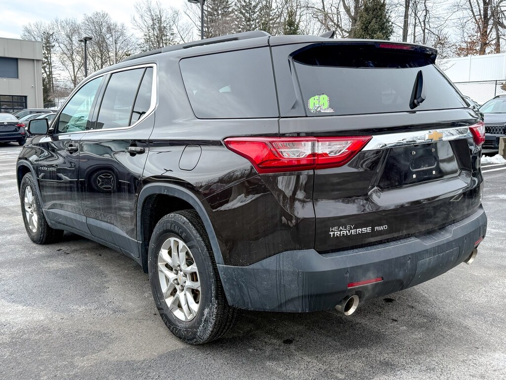 Havana Brown Metallic 2019 Chevrolet Traverse LT Cloth w/1LT 3.6L V6 SIDI VVT 9-Speed Automatic AWD 3.49 Axle Ratio, 3rd row seats: split-bench, 4-Wheel Disc Brakes, 6 Speakers, 7-Passenger Seating (2-2-3 Seating Configuration), ABS brakes, Air Conditioning, Alloy wheels, AM/FM radio: SiriusXM, Apple CarPlay/Android Auto, Automatic temperature control, Brake assist, Bumpers: body-color, Compass, Delay-off headlights, Driver door bin, Driver vanity mirror, Dual front impact airbags, Dual front side impact airbags, Electronic Stability Control, Emergency communication system, Four wheel independent suspension, Front anti-roll bar, Front Bucket Seats, Front Center Armrest, Front dual zone A/C, Front fog lights, Front License Plate Bracket Mounting Package, Front reading lights, Fully automatic headlights, Garage door transmitter, Heated door mirrors, Heated front seats, High-Intensity Discharge Headlights, Illuminated entry, Low tire pressure warning, Occupant sensing airbag, Outside temperature display, Overhead airbag, Overhead console, Panic alarm, Passenger door bin, Passenger vanity mirror, Power door mirrors, Power driver seat, Power Liftgate, Power steering, Power windows, Preferred Equipment Group 1LT, Premium Cloth Seat Trim, Radio data system, Radio: Chevrolet Infotainment AM/FM w/8" Screen, Rear air conditioning, Rear anti-roll bar, Rear reading lights, Rear window defroster, Rear window wiper, Remote keyless entry, Roof rack: rails only, Security system, SiriusXM Radio, Speed control, Speed-sensing steering, Spoiler, Steering wheel mounted audio controls, Tachometer, Telescoping steering wheel, Tilt steering wheel, Traction control, Trip computer, Turn signal indicator mirrors, Variably intermittent wipers, Voltmeter, Wheels: 18" Bright Silver Painted Aluminum.