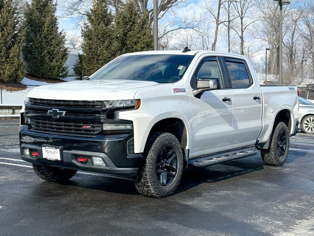 Iridescent Pearl Tricoat 2020 Chevrolet Silverado 1500 LT Trail Boss EcoTec3 5.3L V8 10-Speed Automatic 4WD 10-Way Power Driver Seat w/Lumbar, 12-Volt Rear Auxiliary Power Outlet, 120-Volt Bed Mounted Power Outlet, 120-Volt Instrument Panel Power Outlet, 170 Amps Alternator, 2 USB Ports, 2 USB Ports (First Row), 3.23 Rear Axle Ratio, 4-Way Manual Driver Seat Adjuster, 4-Wheel Disc Brakes, 4.2 Diagonal Color Display Driver Info Center, 40/20/40 Front Split-Bench Seat, 4G LTE Wi-Fi Hot Spot Capable, 6 Speakers, 6-Speaker Audio System, ABS brakes, Advanced Trailering Package, Advanced Trailering System, Air Conditioning, All-Weather Floor Liner (LPO) (AAK), Alloy wheels, AM/FM radio: SiriusXM, Apple CarPlay/Android Auto, Auxiliary External Transmission Oil Cooler, Bed Protection Package, Bluetooth® For Phone, Brake assist, Chevrolet Connected Access Capable, Chevytec Spray-On Black Bedliner, Cloth Seat Trim, Color-Keyed Carpeting Floor Covering, Compass, Convenience Package II, Convenience Package w/Buckets Seats, Deep-Tinted Glass, Delay-off headlights, Driver door bin, Driver vanity mirror, Dual Exhaust w/Polished Outlets, Dual front impact airbags, Dual front side impact airbags, Dual-Zone Automatic Climate Control, Electric Rear-Window Defogger, Electrical Lock Control Steering Column, Electronic Stability Control, Floor Mounted Center Console, Front anti-roll bar, Front Bucket Seats, Front Center Armrest w/Storage, Front fog lights, Front LED Fog Lamps, Front License Plate Kit, Front reading lights, Front wheel independent suspension, Fully automatic headlights, HD Radio, HD Rear Vision Camera, Heated door mirrors, Heated Driver & Front Outboard Passenger Seats, Heated Steering Wheel, Heavy-Duty Rear Locking Differential, High Capacity Air Filter, High Gloss Black Grille, High Gloss Black Mirror Caps, Hill Descent Control, Hitch Guidance, Hitch Guidance w/Hitch View, Illuminated entry, Integrated Trailer Brake Controller, Keyless Open & Start, Lane Change Alert w/Side Blind Zone Alert, Leather Package, Leather Wrapped Steering Wheel, LED Cargo Area Lighting, LED Reflector Headlamps, Low tire pressure warning, Manual Tilt-Wheel Steering Column, Manual Tilt/Telescoping Steering Column, Occupant sensing airbag, Off-Road Assist Steps (LPO), Off-Road Suspension w/2 Lift, OnStar & Chevrolet Connected Services Capable, Outside temperature display, Overhead airbag, Overhead console, Panic alarm, Passenger door bin, Passenger vanity mirror, Perforated Leather-Appointed Front Seat Trim, Performance Red Recovery Hooks, Perimeter Lighting, Power Door Locks, Power door mirrors, Power Front Windows w/Driver Express Up/Down, Power Front Windows w/Passenger Express Down, Power Rear Windows w/Express Down, Power Sliding Rear Window w/Rear Defogger, Power steering, Power Sunroof, Power windows, Preferred Equipment Group 2LT, Premium Bose 7-Speaker Sound System, Radio data system, Radio: Chevrolet Infotainment 3 Plus System, Radio: Chevrolet Infotainment 3 System, Rear 60/40 Folding Bench Seat (Folds Up), Rear Cross Traffic Alert, Rear Dual USB Charging-Only Ports, Rear reading lights, Rear step bumper, Rear Vision Camera, Rear Wheelhouse Liners, Rear window defroster, Remote keyless entry, Remote Vehicle Starter System, Safety Package, Security system, Single-Zone Manual/Semi-Automatic Air Conditioning, SiriusXM w/360L, Speed control, Speed-sensing steering, Split folding rear seat, Steering Wheel Audio Controls, Steering wheel mounted audio controls, Steering Wheel Mounted Electronic Cruise Control, Suspension Package, Tachometer, Theft Deterrent System (Unauthorized Entry), Tilt steering wheel, Traction control, Trailer Tire Pressure Monitor Sensors, Trailering Package, Trip computer, Ultrasonic Front & Rear Park Assist, Universal Home Remote, Up-Level Rear Seat w/Storage Package, Variably intermittent wipers, Voltmeter, Wheel Locks (Set of 4) (LPO), Wheels: 18 x 8.5 Black Painted Aluminum.
