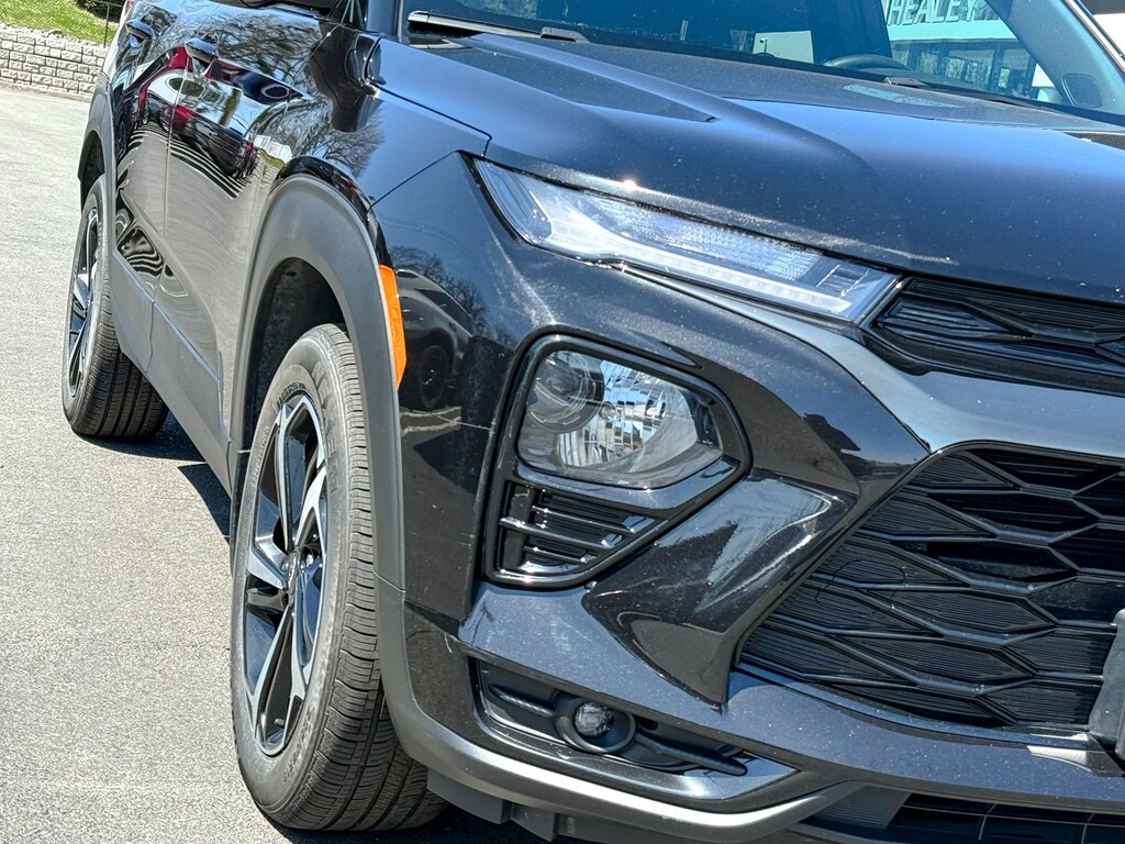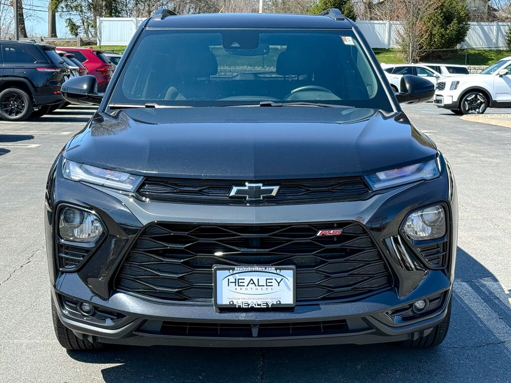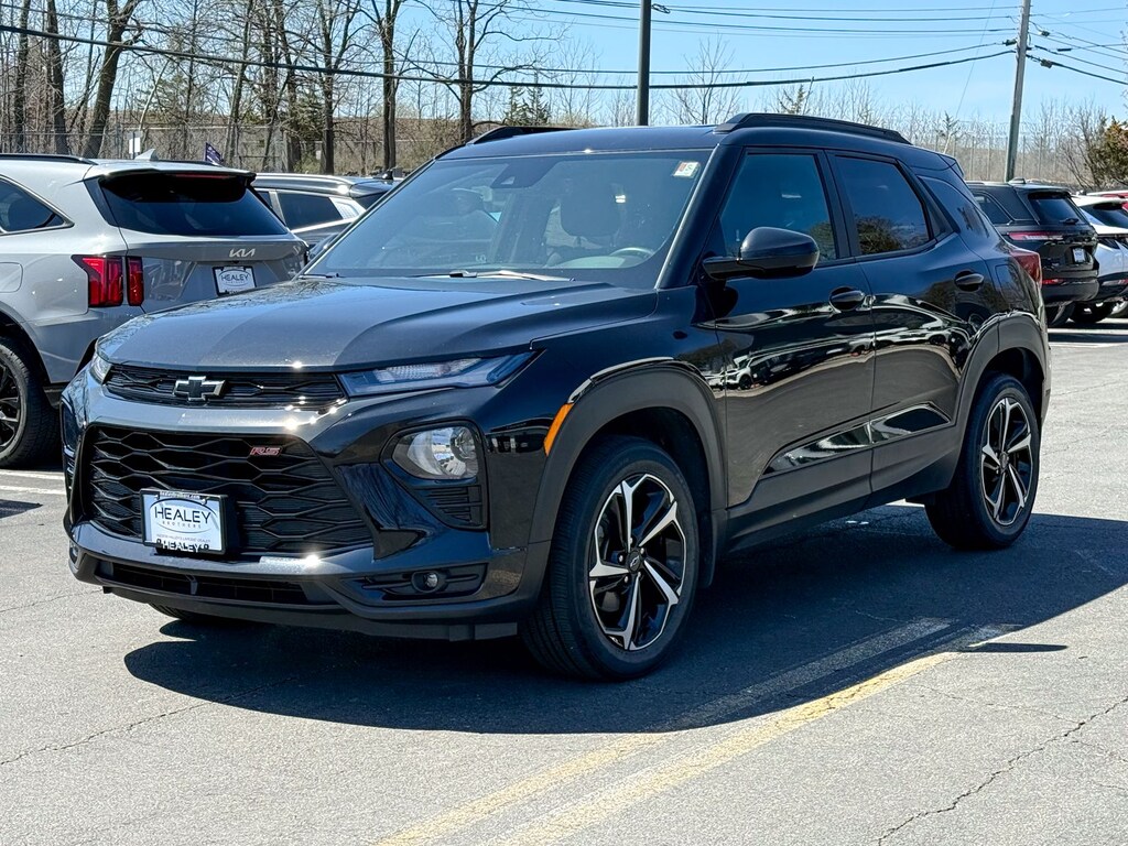 Mosaic Black Metallic 2023 Chevrolet TrailBlazer RS 1.3L Ecotec Turbo DOHC SIDI w/VVT 9-Speed Automatic AWD 1 Type-A & 1 Type-C USB Charging-Only Ports, 120-Volt Power Outlet, 2-Way Adjustable Front Head Restraints, 2-Way Power Driver Lumbar Seat Adjuster, 3.17 Axle Ratio, 4-Way Manual Front Passenger Seat Adjuster, 4-Wheel Disc Brakes, 6 Speakers, 6-Speaker Audio System Feature w/Amplifier, 7" Diagonal Color Touchscreen, 8-Way Power Driver Seat Adjuster, 8" Diagonal Color Touchscreen Display, ABS brakes, Air Conditioning, Alloy wheels, AM/FM radio: SiriusXM, Auto High-beam Headlights, Brake assist, Bumpers: body-color, Cabin Humidity Sensor, Cloth w/Leatherette Seat Trim, Compass, Convenience Package, Delay-off headlights, Driver & Front Passenger Illuminated Vanity Mirrors, Driver Confidence Package, Driver door bin, Driver vanity mirror, Dual front impact airbags, Dual front side impact airbags, Dual-Pane Panoramic Power Sunroof, Electronic Stability Control, Emergency communication system: OnStar and Chevrolet connected services capable, Exterior Parking Camera Rear, Flat-Folding Front Passenger Seatback, Front anti-roll bar, Front Bucket Seats, Front Center Armrest, Front fog lights, Front License Plate Bracket, Front reading lights, Front wheel independent suspension, Fully automatic headlights, Hands-Free Power Programmable Liftgate, Heated door mirrors, Heated Driver & Front Passenger Seats, Heated front seats, Heated Steering Wheel, Heated steering wheel, Illuminated entry, Inside Rear-View Auto-Dimming Mirror, Knee airbag, Lane Change Alert w/Side Blind Zone Alert, Leather Shift Knob, Leather steering wheel, Low tire pressure warning, Mosaic Black Metallic Roof, Not Equipped w/Rear Park Assist (060), Occupant sensing airbag, Overhead airbag, Overhead console, Panic alarm, Passenger door bin, Passenger vanity mirror, Power door mirrors, Power driver seat, Power steering, Power windows, Preferred Equipment Group 1RS, Radio data system, Radio: Chevrolet Infotainment 3 System, Rear Cross Traffic Alert, Rear Park Assist, Rear seat center armrest, Rear side impact airbag, Rear window defroster, Rear window wiper, Remote keyless entry, Ride & Handling Suspension, Security system, Single-Zone Auto Climate Control Air Conditioning, SiriusXM Radio, Speed control, Split folding rear seat, Spoiler, Steering wheel mounted audio controls, Sun & Liftgate Package, Tachometer, Telescoping steering wheel, Tilt steering wheel, Traction control, Trip computer, Variably intermittent wipers, Wheels: 18" High Gloss Black Machined Aluminum, Wireless Apple CarPlay/Android Auto.