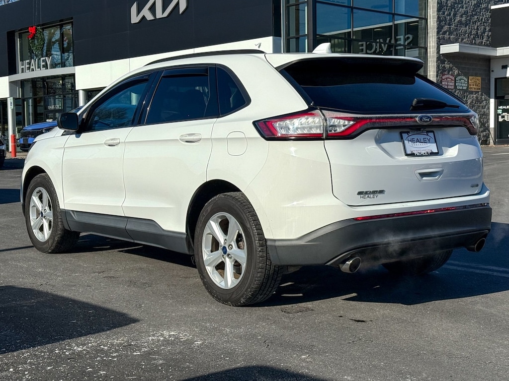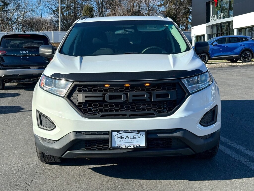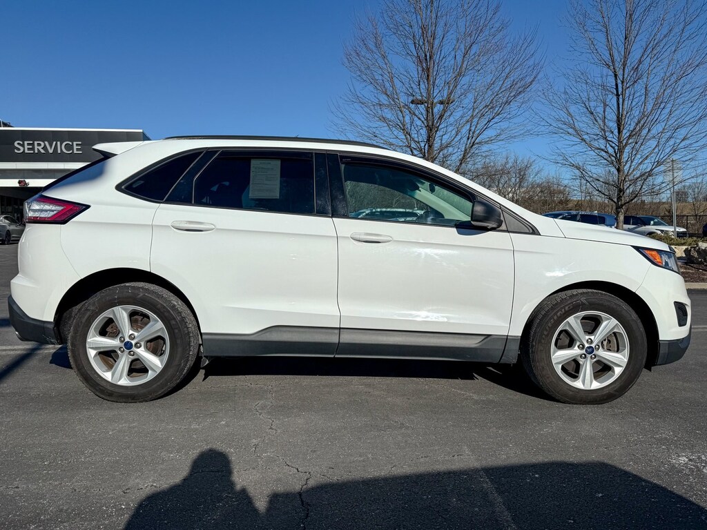 Oxford White 2016 Ford Edge SE EcoBoost 2.0L I4 GTDi DOHC Turbocharged VCT 6-Speed Automatic AWD 4-Wheel Disc Brakes, 6 Speakers, ABS brakes, Air Conditioning, Alloy wheels, AM/FM radio, AM/FM Stereo w/Single CD, Axle Ratio: 3.16, Black Roof Rack Side Rails, Brake assist, Bumpers: body-color, CD player, Cloth Bucket Seats, Compass, Delay-off headlights, Driver door bin, Driver vanity mirror, Dual front impact airbags, Dual front side impact airbags, Electronic Stability Control, Emergency communication system, Equipment Group 100A, Exterior Parking Camera Rear, Four wheel independent suspension, Front & Rear All-Weather Floor Mats, Front anti-roll bar, Front Bucket Seats, Front Center Armrest w/Storage, Front License Plate Bracket, Front reading lights, Fully automatic headlights, Illuminated entry, Knee airbag, Leather Shift Knob, Low tire pressure warning, Occupant sensing airbag, Outside temperature display, Overhead airbag, Overhead console, Panic alarm, Passenger door bin, Passenger vanity mirror, Power door mirrors, Power steering, Power windows, Rear anti-roll bar, Rear reading lights, Rear seat center armrest, Rear window defroster, Rear window wiper, Remote keyless entry, Speed control, Speed-Sensitive Wipers, Split folding rear seat, Spoiler, Steering wheel mounted audio controls, SYNC, Tachometer, Telescoping steering wheel, Tilt steering wheel, Traction control, Trip computer, Variably intermittent wipers, Wheels: 18 Aluminum Painted Sparkle Silver.