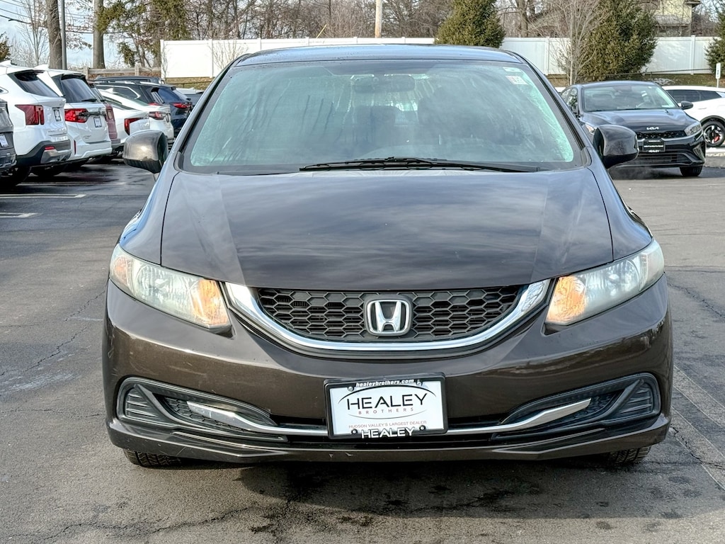 Brown 2013 Honda Civic LX 1.8L I4 SOHC 16V i-VTEC Compact 5-Speed Automatic FWD 15 Wheels w/Full Covers, 160-Watt AM/FM/CD Audio System, 4 Speakers, ABS brakes, Air Conditioning, AM/FM radio, Brake assist, Bumpers: body-color, CD player, Cloth Seat Trim, Delay-off headlights, Driver door bin, Driver vanity mirror, Dual front impact airbags, Dual front side impact airbags, Electronic Stability Control, Exterior Parking Camera Rear, Four wheel independent suspension, Front anti-roll bar, Front Bucket Seats, Front Center Armrest, Front reading lights, Illuminated entry, Low tire pressure warning, Occupant sensing airbag, Outside temperature display, Overhead airbag, Panic alarm, Passenger door bin, Passenger vanity mirror, Power door mirrors, Power steering, Power windows, Radio data system, Rear anti-roll bar, Rear window defroster, Reclining Front Bucket Seats, Remote keyless entry, Security system, Speed control, Speed-sensing steering, Steering wheel mounted audio controls, Tachometer, Telescoping steering wheel, Tilt steering wheel, Traction control, Trip computer.