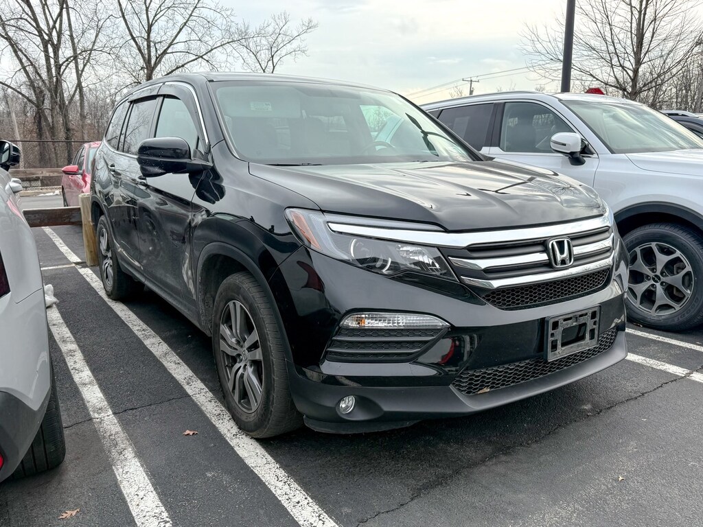 Crystal Black Pearl 2016 Honda Pilot EX-L 3.5L V6 24V SOHC i-VTEC 6-Speed Automatic AWD 18 Alloy Wheels, 3rd row seats: split-bench, 4-Wheel Disc Brakes, 4.25 Axle Ratio, 7 Speakers, ABS brakes, Air Conditioning, Alloy wheels, AM/FM radio: SiriusXM, Auto-dimming Rear-View mirror, Automatic temperature control, Brake assist, Bumpers: body-color, Compass, Delay-off headlights, Driver door bin, Driver vanity mirror, Dual front impact airbags, Dual front side impact airbags, Electronic Stability Control, Emergency communication system: HondaLink Assist, Exterior Parking Camera Rear, Four wheel independent suspension, Front anti-roll bar, Front Bucket Seats, Front Center Armrest, Front dual zone A/C, Front fog lights, Front reading lights, Fully automatic headlights, Garage door transmitter: HomeLink, Heated door mirrors, Heated Front Bucket Seats, Heated front seats, Illuminated entry, Leather Shift Knob, Leather-Trimmed Seats, Low tire pressure warning, Occupant sensing airbag, Outside temperature display, Overhead airbag, Overhead console, Panic alarm, Passenger door bin, Passenger vanity mirror, Power door mirrors, Power driver seat, Power Liftgate, Power moonroof, Power passenger seat, Power steering, Power windows, Radio data system, Radio: AM/FM Audio System, Rear air conditioning, Rear anti-roll bar, Rear reading lights, Rear seat center armrest, Rear window defroster, Rear window wiper, Remote keyless entry, Security system, SiriusXM Radio, Speed control, Speed-sensing steering, Speed-Sensitive Wipers, Split folding rear seat, Spoiler, Steering wheel mounted audio controls, Tachometer, Telescoping steering wheel, Tilt steering wheel, Traction control, Trip computer, Variably intermittent wipers.