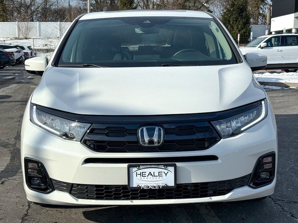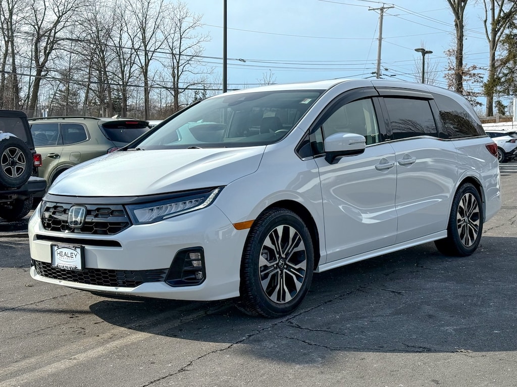 White 2025 Honda Odyssey Elite 3.5L V6 SOHC i-VTEC 24V 10-Speed Automatic FWD 11 Speakers, 3rd row seats: split-bench, 4-Wheel Disc Brakes, ABS brakes, Adaptive Cruise Control: Adaptive Cruise Control (ACC) with Low-Speed Follow, Air Conditioning, Alloy wheels, AM/FM radio: SiriusXM, Anti-whiplash front head restraints, Apple CarPlay/Android Auto, Auto High-beam Headlights, Auto-dimming door mirrors, Auto-dimming Rear-View mirror, Automatic temperature control, Blind Spot Information (BSI) System warning, Brake assist, Bumpers: body-color, Compass, Delay-off headlights, Driver door bin, Driver vanity mirror, Driver's Seat Mounted Armrest, Dual front impact airbags, Dual front side impact airbags, Electronic Stability Control, Emergency communication system: HondaLink, Exterior Parking Camera Rear, Four wheel independent suspension, Front anti-roll bar, Front Bucket Seats, Front dual zone A/C, Front fog lights, Front reading lights, Fully automatic headlights, Garage door transmitter: HomeLink, Heated & Ventilated Front Bucket Seats, Heated door mirrors, Heated front seats, Heated steering wheel, Illuminated entry, Knee airbag, Lane departure: Lane Keeping Assist System (LKAS) active, Leather steering wheel, Low tire pressure warning, Memory seat, Navigation system: Honda Satellite-Linked Navigation System, Occupant sensing airbag, Outside temperature display, Overhead airbag, Overhead console, Panic alarm, Passenger door bin, Passenger seat mounted armrest, Passenger vanity mirror, Perforated Leather Trimmed Seats w/Piping, Power door mirrors, Power driver seat, Power Liftgate, Power moonroof, Power passenger seat, Power steering, Power windows, Radio data system, Radio: 500-Watt AM/FM/HD Premium Audio System, Rain sensing wipers, Rear air conditioning, Rear anti-roll bar, Rear audio controls, Rear reading lights, Rear seat center armrest, Rear window defroster, Rear window wiper, Reclining 3rd row seat, Remote keyless entry, Security system, Speed control, Speed-sensing steering, Speed-Sensitive Wipers, Split folding rear seat, Spoiler, Steering wheel mounted audio controls, Tachometer, Telescoping steering wheel, Tilt steering wheel, Traction control, Trip computer, Turn signal indicator mirrors, Variably intermittent wipers, Ventilated front seats, Wheels: 19 Machine-Finished Alloy.