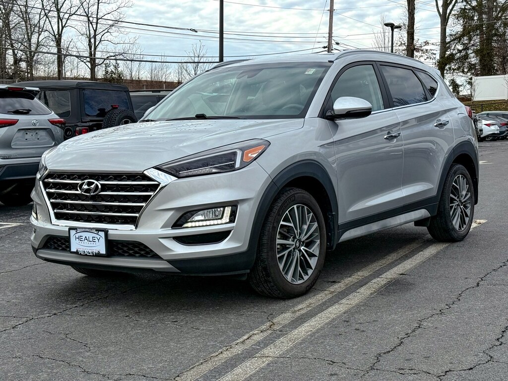 Stellar Silver 2020 Hyundai Tucson Limited 2.4L I4 DGI DOHC 16V 6-Speed Automatic with Shiftronic AWD 18 x 7.0J Alloy Wheels, 4-Wheel Disc Brakes, 8 Speakers, ABS brakes, Air Conditioning, Alloy wheels, AM/FM radio: SiriusXM, Apple CarPlay & Android Auto, Auto-dimming Rear-View mirror, Automatic temperature control, Axle Ratio: 3.195, Brake assist, Bumpers: body-color, Cargo Cover, Cargo Net, Cargo Package, Carpeted Floor Mats, Delay-off headlights, Driver door bin, Driver vanity mirror, Dual front impact airbags, Dual front side impact airbags, Electronic Stability Control, Emergency communication system, Exterior Parking Camera Rear, First Aid Kit, Four wheel independent suspension, Front anti-roll bar, Front Bucket Seats, Front Center Armrest, Front dual zone A/C, Front fog lights, Front reading lights, Fully automatic headlights, Garage door transmitter: HomeLink, Heated door mirrors, Heated Front Bucket Seats, Heated front seats, Heated steering wheel, Illuminated entry, Leather Seat Trim, Leather Shift Knob, Low tire pressure warning, Mudguards, Occupant sensing airbag, Option Group 01, Outside temperature display, Overhead airbag, Overhead console, Panic alarm, Passenger door bin, Passenger vanity mirror, Power door mirrors, Power driver seat, Power Liftgate, Power passenger seat, Power steering, Power windows, Radio: Infinity Audio System, Rear anti-roll bar, Rear Bumper Applique, Rear seat center armrest, Rear window defroster, Rear window wiper, Remote keyless entry, Reversible Cargo Tray, Roof rack: rails only, Security system, Speed control, Speed-sensing steering, Split folding rear seat, Spoiler, Steering wheel mounted audio controls, Tachometer, Telescoping steering wheel, Tilt steering wheel, Traction control, Trip computer, Turn signal indicator mirrors, Variably intermittent wipers.