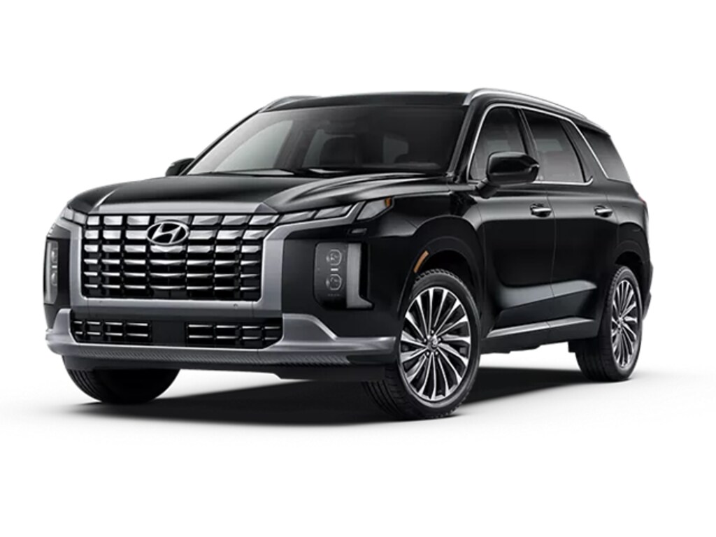 Abyss Black Pearl 2023 Hyundai Palisade Calligraphy V6 8-Speed Automatic with SHIFTRONIC AWD 12 Speakers, 3.648 Axle Ratio, 3rd row seats: split-bench, 4-Wheel Disc Brakes, ABS brakes, Air Conditioning, Alloy wheels, AM/FM radio: SiriusXM, Apple CarPlay & Android Auto, Auto High-beam Headlights, Auto-dimming door mirrors, Auto-dimming Rear-View mirror, Auto-leveling suspension, Automatic temperature control, Brake assist, Bumpers: body-color, Carpeted Floor Mats, Compass, Delay-off headlights, Driver door bin, Driver vanity mirror, Dual front impact airbags, Dual front side impact airbags, Electronic Stability Control, Emergency communication system: Blue Link Connected Car Service (3-year complimentary subscription), Exterior Parking Camera Rear, Four wheel independent suspension, Front anti-roll bar, Front Bucket Seats, Front Center Armrest, Front dual zone A/C, Front reading lights, Fully automatic headlights, Garage door transmitter: HomeLink, harman/kardon® Speakers, Heads-Up Display, Heated & Ventilated Front Bucket Seats, Heated door mirrors, Heated front seats, Heated rear seats, Heated steering wheel, Illuminated entry, Knee airbag, Low tire pressure warning, Memory seat, Navigation System, Occupant sensing airbag, Option Group 01, Outside temperature display, Overhead airbag, Overhead console, Panic alarm, Passenger door bin, Passenger vanity mirror, Power door mirrors, Power driver seat, Power Liftgate, Power moonroof, Power passenger seat, Power steering, Power windows, Premium Nappa Leather Seat Trim, Radio data system, Radio: AM/FM/MP3 Premium Audio System, Rain sensing wipers, Rear air conditioning, Rear anti-roll bar, Rear audio controls, Rear reading lights, Rear side impact airbag, Rear window defroster, Rear window wiper, Reclining 3rd row seat, Remote keyless entry, Security system, Speed control, Speed-sensing steering, Split folding rear seat, Spoiler, Steering wheel mounted audio controls, Tachometer, Telescoping steering wheel, Tilt steering wheel, Traction control, Trip computer, Turn signal indicator mirrors, Variably intermittent wipers, Ventilated front seats, Ventilated rear seats, Wheels: 20 x 7.5J Calligraphy Exclusive Alloy.