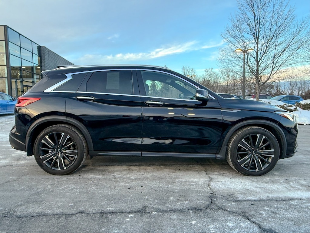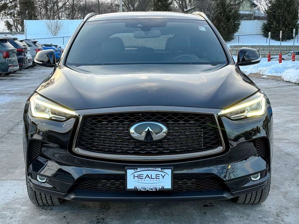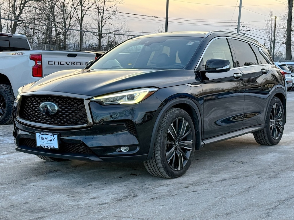 Black Obsidian 2021 INFINITI QX50 LUXE I4 CVT AWD 4-Wheel Disc Brakes, 5.846 Axle Ratio, 6 Speakers, ABS brakes, Air Conditioning, Alloy wheels, AM/FM radio: SiriusXM, AM/FM/CD Audio System, Anti-whiplash front head restraints, Appearance Package, Apple CarPlay/Android Auto, Auto High-beam Headlights, Auto-dimming Rear-View mirror, Automatic temperature control, Black Grille Mesh, Black Outside Mirror Caps, Body Color Rear Diffuser, Brake assist, Bumpers: body-color, CD player, Dark Chrome Front Fender Accent, Dark Chrome Front Grille Surround, Dark Chrome Tailgate Finisher, Delay-off headlights, Driver door bin, Driver vanity mirror, Dual front impact airbags, Dual front side impact airbags, Electronic Stability Control, Emergency communication system: INFINITI InTouch, Exterior Parking Camera Rear, Floor Mats, Four wheel independent suspension, Front anti-roll bar, Front Bucket Seats, Front Center Armrest, Front dual zone A/C, Front fog lights, Front reading lights, Garage door transmitter: HomeLink, Graphite Headliner, Heated Front Bucket Seats, Heated front seats, Heated Outside Mirrors, Illuminated entry, Illuminated Kick Plates, Knee airbag, Leather Shift Knob, Leatherette Seat Trim, Literature Kit, Low tire pressure warning, Occupant sensing airbag, Outside temperature display, Overhead airbag, Overhead console, Panic alarm, Passenger door bin, Passenger vanity mirror, Power door mirrors, Power driver seat, Power Liftgate, Power moonroof, Power passenger seat, Power steering, Power windows, Radio data system, Rear anti-roll bar, Rear Parking Sensors, Rear reading lights, Rear seat center armrest, Rear side impact airbag, Rear window defroster, Rear window wiper, Remote keyless entry, Security system, Speed control, Speed-sensing steering, Speed-Sensitive Wipers, Splash Guards (Set of 4), Split folding rear seat, Spoiler, Steering wheel mounted audio controls, Tachometer, Telescoping steering wheel, Tilt steering wheel, Traction control, Trip computer, Turn signal indicator mirrors, Variably intermittent wipers, Wheels: 19" x 7.5J Silver Painted Alloy, Wheels: 20" Black and Machine Finished.