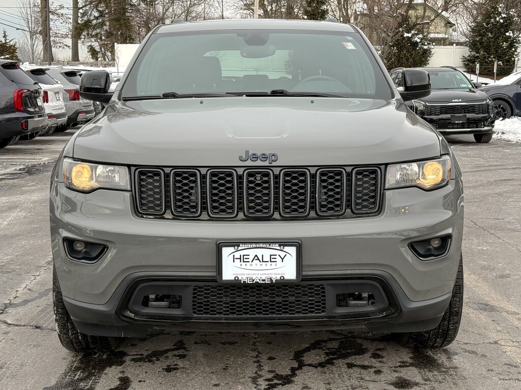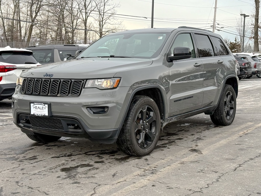 Sting-Gray Clearcoat 2020 Jeep Grand Cherokee Upland Edition 3.6L V6 24V VVT 8-Speed Automatic 4WD 1-Year SiriusXM Guardian Trial, 115V Auxiliary Power Outlet, 3.45 Rear Axle Ratio, 4-Wheel Disc Brakes, 4G LTE Wi-Fi Hot Spot, 5-Year SiriusXM Traffic Service, 5-Year SiriusXM Travel Link Service, 6 Speakers, 8.4" Touchscreen Display, ABS brakes, Air Conditioning, Alloy wheels, AM/FM radio, Anti-whiplash front head restraints, Apple CarPlay, Apple CarPlay/Android Auto, Auto-Dimming Rear-View Mirror, Automatic temperature control, Blue-Accent Badges, Brake assist, Bumpers: body-color, Cloth Bucket Seats, Compass, Dark Day Light Opening Moldings, Dark Headlamp Bezel Finish, Dark Lens Taillamps, Delay-off headlights, Disassociated Touchscreen Display, Driver door bin, Driver vanity mirror, Dual front impact airbags, Dual front side impact airbags, Electronic Stability Control, For Details Visit DriveUconnect.com, Four wheel independent suspension, Front anti-roll bar, Front Bucket Seats, Front Center Armrest w/Storage, Front dual zone A/C, Front fog lights, Front License Plate Bracket, Front reading lights, Fully automatic headlights, Gloss Black Exterior Accents, Gloss Black Grille w/Black Honeycomb, Gloss Black Rear Fascia Applique, Gloss Black Roof Rails, Google Android Auto, GPS Antenna Input, GPS Navigation, HD Radio, Heated door mirrors, Hill Descent Control, Illuminated entry, Instrument Cluster w/Off-Road Disp. Pages, Integrated Center Stack Radio, Integrated Voice Command w/Bluetooth, Jeep Black Gloss Badging, Knee airbag, Leather Shift Knob, Liquid Titanium Accents, Low tire pressure warning, Normal Duty Suspension, Occupant sensing airbag, Outside temperature display, Overhead airbag, Overhead console, Panic alarm, ParkView Rear Back-Up Camera, Passenger door bin, Passenger vanity mirror, Power 4-Way Driver Lumbar Adjust, Power 8-Way Driver/Manual Passenger Seat, Power door mirrors, Power steering, Power Sunroof, Power windows, Quadra-Trac II 4WD System, Quick Order Package 2BC Upland, Radio data system, Radio: Uconnect 4C Nav w/8.4" Display, Rear anti-roll bar, Rear Fascia Black MIC Step Pad, Rear reading lights, Rear seat center armrest, Rear window defroster, Rear window wiper, Remote keyless entry, Security & Convenience Group, Security Alarm, Selec-Terrain System, SiriusXM Satellite Radio, SiriusXM Traffic Plus, SiriusXM Travel Link, Speed control, Speed-sensing steering, Speed-Sensitive Wipers, Split folding rear seat, Spoiler, Steering Wheel Mounted Audio Controls, Steering wheel mounted audio controls, Tachometer, Telescoping steering wheel, Tilt steering wheel, Tow Hooks, Traction control, Trip computer, Universal Garage Door Opener, USB Host Flip, Variably intermittent wipers, Wheels: 17" x 8.0" Silver Aluminum, Wheels: 20" x 8.0" Gloss Black Painted Aluminum.