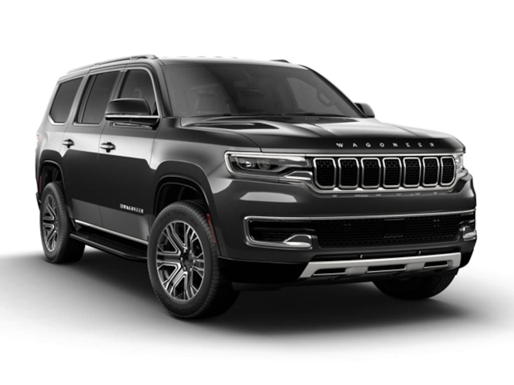 Diamond Black Crystal Pearlcoat 2022 Jeep Wagoneer Series III 5.7L V8 8-Speed Automatic 4WD 10 Speakers, 3.21 Rear Axle Ratio, 3rd row seats: bench, 4-Wheel Disc Brakes, 7-Passenger Seating, ABS brakes, Adjustable pedals, Air Conditioning, Alloy wheels, AM/FM radio: SiriusXM with 360L, Amazon Fire TV Built-In, Anti-whiplash front head restraints, Audio memory, Auto High-beam Headlights, Auto-dimming door mirrors, Auto-dimming Rear-View mirror, Auto-leveling suspension, Automatic temperature control, Brake assist, Bumpers: body-color, Compass, Delay-off headlights, Driver door bin, Driver vanity mirror, Driver's Seat Mounted Armrest, Dual front impact airbags, Dual front side impact airbags, Electronic Stability Control, Exterior Parking Camera Rear, Flexible Seating Group, Floor Console w/Cupholder, Four wheel independent suspension, Front anti-roll bar, Front Bucket Seats, Front Center Armrest w/Storage, Front dual zone A/C, Front fog lights, Front reading lights, Fully automatic headlights, Garage door transmitter, Genuine wood console insert, Genuine wood dashboard insert, Genuine wood door panel insert, Heads-Up Display, Heated door mirrors, Heated front seats, Heated rear seats, Heated steering wheel, Illuminated entry, Knee airbag, Leather Trimmed Bucket Seats, Low tire pressure warning, Memory seat, Navigation System, Normal Duty Suspension, Occupant sensing airbag, Outside temperature display, Overhead airbag, Overhead console, Panic alarm, Passenger door bin, Passenger seat mounted armrest, Passenger vanity mirror, Pedal memory, Power adjustable front head restraints, Power door mirrors, Power driver seat, Power Liftgate, Power passenger seat, Power steering, Power Tip/Slide Recline 2nd Row Buckets, Power windows, Quick Order Package 22N, Radio data system, Radio: Uconnect 5 Nav w/10.1 Display, Rain sensing wipers, Rear air conditioning, Rear anti-roll bar, Rear dual zone A/C, Rear reading lights, Rear seat center armrest, Rear Seat Video Group 1, Rear window defroster, Rear window wiper, Reclining 3rd row seat, Remote keyless entry, Seatback Video Screens, Security system, Speed control, Speed-sensing steering, Speed-Sensitive Wipers, Split folding rear seat, Steering wheel memory, Steering wheel mounted audio controls, Tachometer, Telescoping steering wheel, Tilt steering wheel, Traction control, Trip computer, Turn signal indicator mirrors, Variably intermittent wipers, Ventilated front seats, Video USB Port, Voltmeter, Wheels: 20 x 9.0 Premium 2 Aluminum.