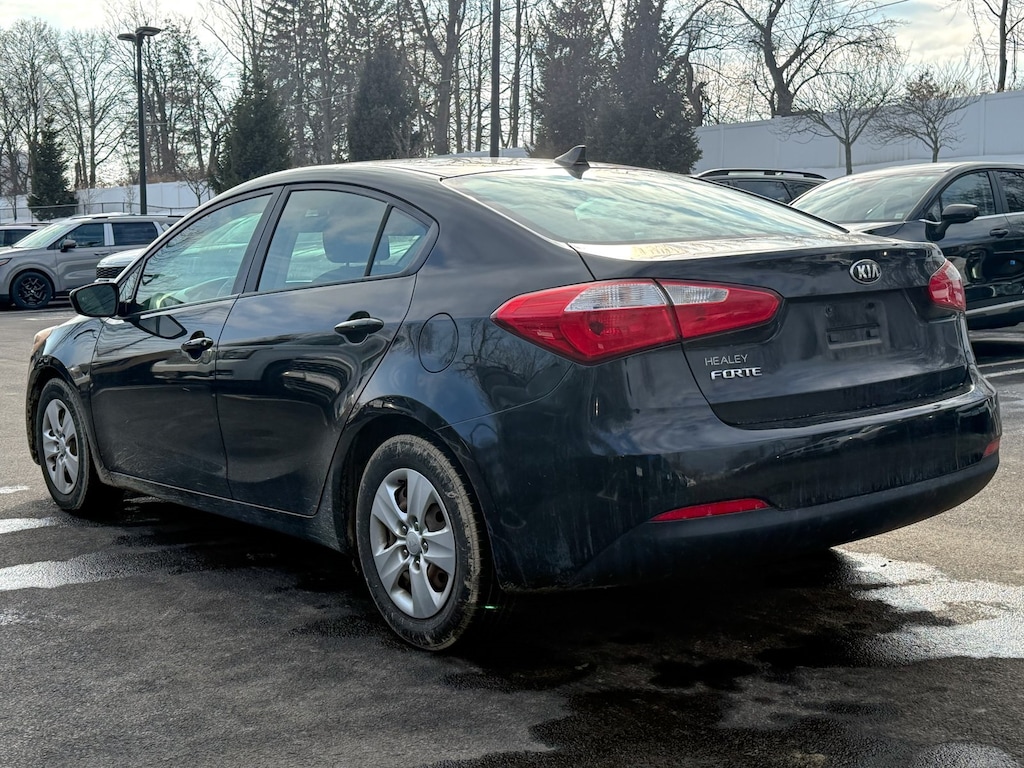 Aurora Black Pearl 2016 Kia Forte LX 1.8L I4 DOHC Dual CVVT 6-Speed Automatic FWD 4 Speakers, 4-Wheel Disc Brakes, ABS brakes, Air Conditioning, AM/FM radio: SiriusXM, AM/FM/CD/MP3 Audio System, Brake assist, Bumpers: body-color, Carpeted Floor Mats, CD player, Cloth Seat Trim, Delay-off headlights, Driver door bin, Driver vanity mirror, Dual front impact airbags, Dual front side impact airbags, Electronic Stability Control, Front anti-roll bar, Front Bucket Seats, Front Center Armrest, Front wheel independent suspension, Heated door mirrors, Illuminated entry, Low tire pressure warning, Occupant sensing airbag, Outside temperature display, Overhead airbag, Panic alarm, Passenger door bin, Passenger vanity mirror, Power door mirrors, Power steering, Power windows, Rear window defroster, Remote keyless entry, Split folding rear seat, Steering wheel mounted audio controls, Tachometer, Telescoping steering wheel, Tilt steering wheel, Traction control, Trip computer, Variably intermittent wipers, Wheels: 15" x 6.0" Steel w/Wheel Covers.