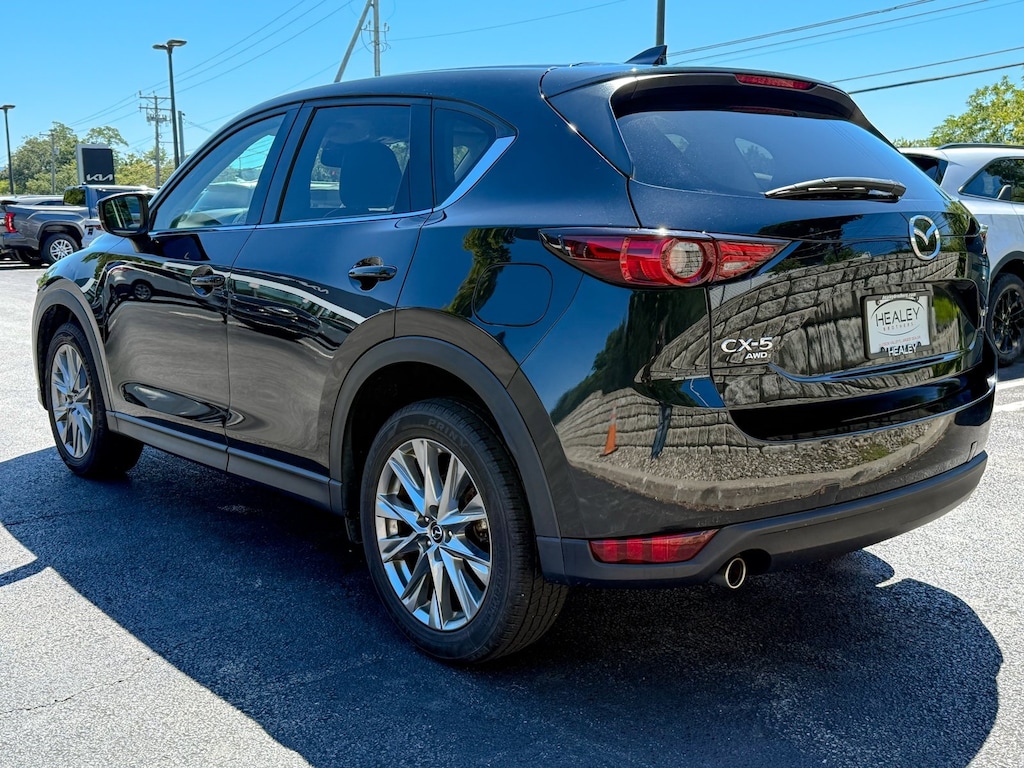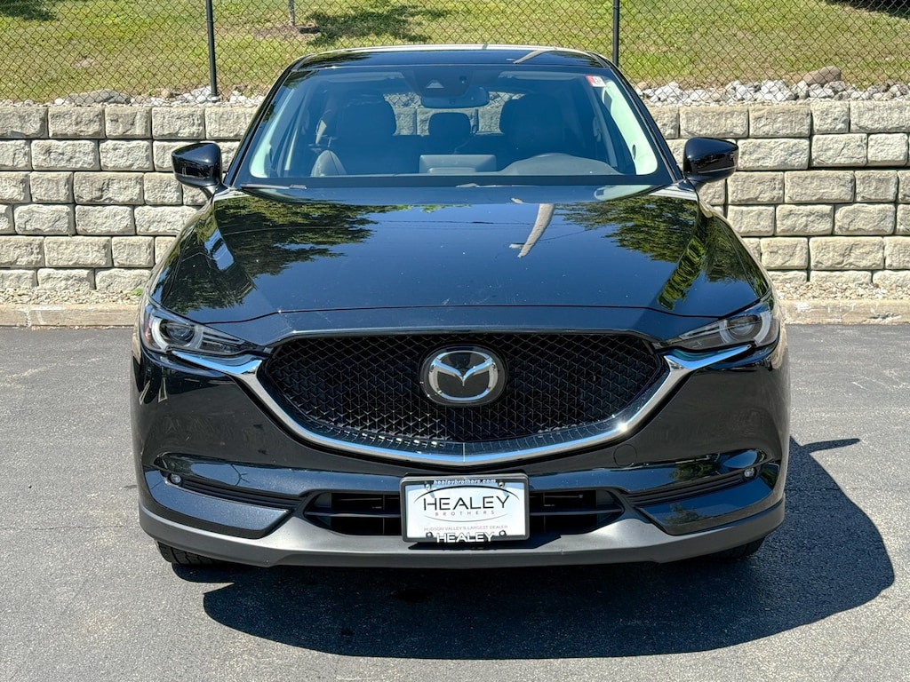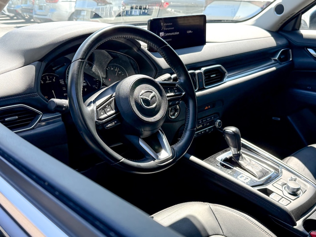 Jet Black Mica 2021 Mazda CX-5 Grand Touring SKYACTIV® 2.5L 4-Cylinder DOHC 16V 6-Speed Automatic AWD 10 Speakers, 4-Wheel Disc Brakes, 4.624 Axle Ratio, ABS brakes, Air Conditioning, All-Weather Floor Mats, Alloy wheels, AM/FM radio: SiriusXM, AppLink/Apple CarPlay and Android Auto, Auto High-beam Headlights, Auto-dimming Rear-View mirror, Automatic temperature control, Bose 10-Speaker Premium Audio Sound System, Brake assist, Bumpers: body-color, Delay-off headlights, Driver door bin, Driver vanity mirror, Dual front impact airbags, Dual front side impact airbags, Electronic Stability Control, Emergency communication system: MAZDA CONNECT, Exterior Parking Camera Rear, Four wheel independent suspension, Front anti-roll bar, Front Bucket Seats, Front Center Armrest, Front dual zone A/C, Front fog lights, Front reading lights, Fully automatic headlights, Garage door transmitter: HomeLink, Heated door mirrors, Heated Front Bucket Seats, Heated front seats, Illuminated entry, Leather Seat Trim, Leather Shift Knob, Low tire pressure warning, Memory seat, Occupant sensing airbag, Outside temperature display, Overhead airbag, Overhead console, Panic alarm, Passenger door bin, Passenger vanity mirror, Power door mirrors, Power driver seat, Power Liftgate, Power moonroof, Power passenger seat, Power steering, Power windows, Radio data system, Radio: AM/FM/HD Audio System, Rain sensing wipers, Rear anti-roll bar, Rear reading lights, Rear seat center armrest, Rear window defroster, Rear window wiper, Remote keyless entry, Speed control, Speed-sensing steering, Split folding rear seat, Spoiler, Steering wheel mounted audio controls, Tachometer, Telescoping steering wheel, Tilt steering wheel, Traction control, Trip computer, Turn signal indicator mirrors, Variably intermittent wipers, Wheel Locks, Wheels: 19 x 7J Aluminum Alloy.