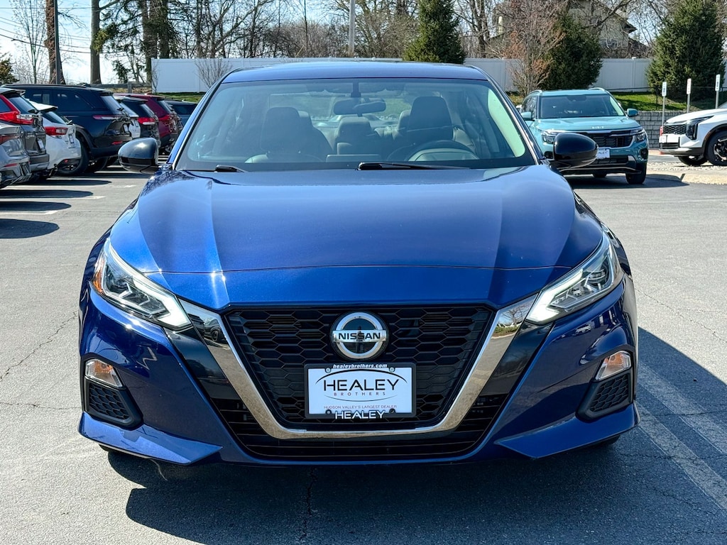 Deep Blue Pearl 2019 Nissan Altima 2.5 SR 2.5L 4-Cylinder DOHC 16V CVT with Xtronic AWD 19" Alloy Wheels, 4-Wheel Disc Brakes, 6 Speakers, ABS brakes, Air Conditioning, Alloy wheels, AM/FM radio: SiriusXM, Blind Spot Warning, Brake assist, Bumpers: body-color, Delay-off headlights, Driver door bin, Driver vanity mirror, Dual front impact airbags, Dual front side impact airbags, Electronic Stability Control, Four wheel independent suspension, Front anti-roll bar, Front Bucket Seats, Front Center Armrest w/Storage, Front reading lights, Front Sport Bucket Seats, Fully automatic headlights, Heated Front Seats, Heated Outside Mirrors, Illuminated entry, Knee airbag, Leather Shift Knob, Low tire pressure warning, NissanConnect featuring Apple CarPlay and Android Auto, Occupant sensing airbag, Outside temperature display, Overhead airbag, Overhead console, Panic alarm, Passenger door bin, Passenger vanity mirror, Power door mirrors, Power driver seat, Power steering, Power windows, Radio data system, Radio: AM/FM Audio System, Rear anti-roll bar, Rear reading lights, Rear seat center armrest, Rear side impact airbag, Rear window defroster, Remote keyless entry, Security system, Single Panel Moonroof, Speed control, Speed-sensing steering, Split folding rear seat, Spoiler, Sport Seat Trim, SR Floor Mats/Trunk Mat/Hideaway Nets, SR Premium Package, Steering wheel mounted audio controls, Tachometer, Telescoping steering wheel, Tilt steering wheel, Traction control, Trip computer, Variably intermittent wipers.
