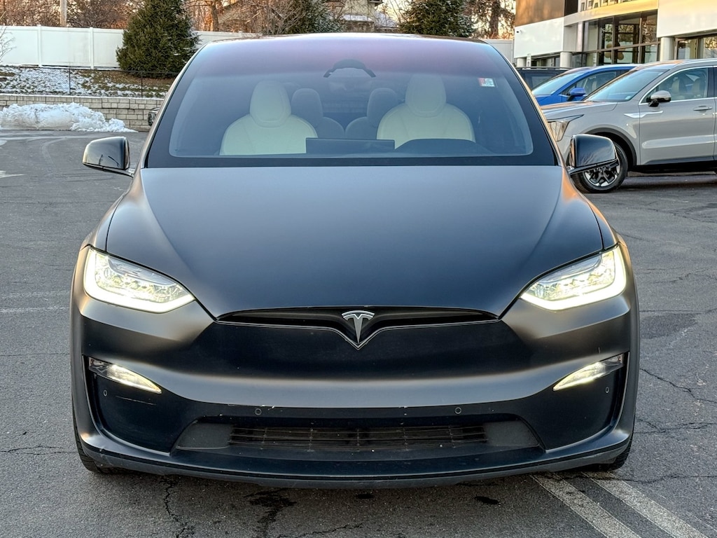 Solid Black 2022 Tesla Model X Plaid Electric Motor 1-Speed Automatic AWD 22 Speakers, 3rd row seats: split-bench, 4-Wheel Disc Brakes, 6 Seat Interior, ABS brakes, Adaptive suspension, Air Conditioning, Alloy wheels, Audio memory, Auto High-beam Headlights, Auto tilt-away steering wheel, Auto-dimming door mirrors, Auto-dimming Rear-View mirror, Auto-leveling suspension, Automatic temperature control, Axle Ratio: TBD, Brake assist, Bumpers: body-color, Compass, Delay-off headlights, Door auto-latch, Driver door bin, Driver vanity mirror, Dual front impact airbags, Dual front side impact airbags, Electronic Stability Control, Exterior Parking Camera Rear, Four wheel independent suspension, Front anti-roll bar, Front Bucket Seats, Front Center Armrest, Front dual zone A/C, Front fog lights, Front reading lights, Fully automatic headlights, Garage door transmitter: Homelink, Heated door mirrors, Heated front seats, Heated rear seats, Heated steering wheel, HVAC memory, Illuminated entry, Knee airbag, Leather steering wheel, Low tire pressure warning, Memory seat, Navigation System, Occupant sensing airbag, Outside temperature display, Overhead airbag, Passenger door bin, Passenger vanity mirror, Power door mirrors, Power driver seat, Power Liftgate, Power passenger seat, Power steering, Power windows, Premium Audio System, Premium Seat Trim, Radio data system, Rain sensing wipers, Rear air conditioning, Rear anti-roll bar, Rear audio controls, Rear reading lights, Rear side impact airbag, Rear window defroster, Remote keyless entry, Security system, Speed control, Speed-sensing steering, Speed-Sensitive Wipers, Split folding rear seat, Spoiler, Sport steering wheel, Steering wheel memory, Steering wheel mounted A/C controls, Steering wheel mounted audio controls, Telescoping steering wheel, Tilt steering wheel, Traction control, Trip computer, Variably intermittent wipers, Ventilated front seats, Wheels: 20" Cyberstream.