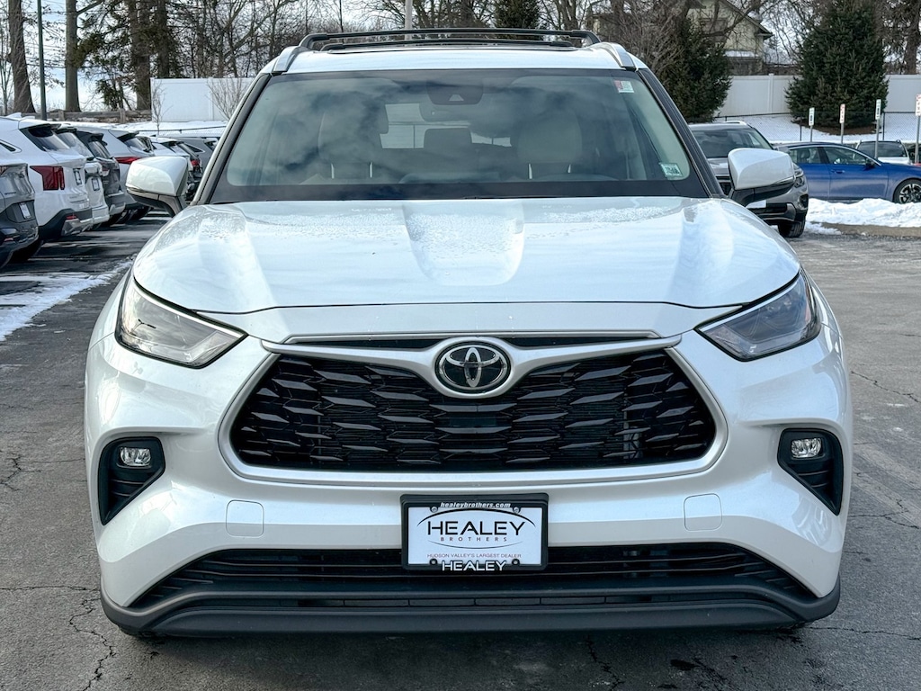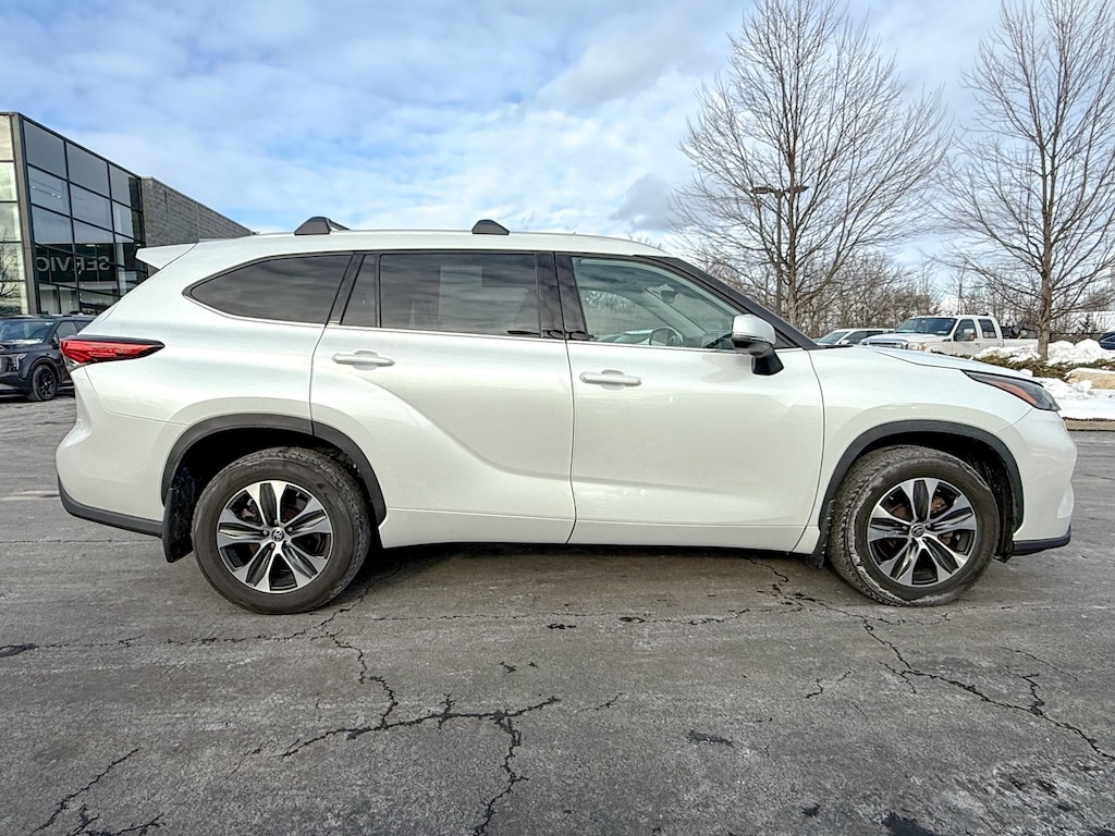 White 2022 Toyota Highlander XLE 3.5L V6 DOHC 8-Speed Automatic AWD 3.003 Axle Ratio, 3rd row seats: split-bench, 4-Wheel Disc Brakes, 6 Speakers, ABS brakes, Air Conditioning, Alloy wheels, AM/FM radio: SiriusXM, Apple CarPlay/Android Auto, Auto High-beam Headlights, Auto-dimming Rear-View mirror, Automatic temperature control, Brake assist, Bumpers: body-color, Delay-off headlights, Driver door bin, Driver vanity mirror, Dual front impact airbags, Dual front side impact airbags, Electronic Stability Control, Emergency communication system: Safety Connect with 1-year trial, Exterior Parking Camera Rear, Four wheel independent suspension, Front anti-roll bar, Front Bucket Seats, Front Center Armrest, Front dual zone A/C, Front fog lights, Front reading lights, Fully automatic headlights, Garage door transmitter: HomeLink, Heated door mirrors, Heated Front Bucket Seats, Heated front seats, Illuminated entry, Knee airbag, Leather Shift Knob, Low tire pressure warning, Occupant sensing airbag, Outside temperature display, Overhead airbag, Overhead console, Panic alarm, Passenger door bin, Passenger vanity mirror, Power door mirrors, Power driver seat, Power Liftgate, Power moonroof, Power passenger seat, Power steering, Power windows, Radio: Audio Plus, Rear air conditioning, Rear anti-roll bar, Rear reading lights, Rear window defroster, Rear window wiper, Reclining 3rd row seat, Remote keyless entry, Roof rack: rails only, Security system, SofTex Seat Trim, Speed control, Speed-sensing steering, Split folding rear seat, Spoiler, Steering wheel mounted audio controls, Tachometer, Telescoping steering wheel, Tilt steering wheel, Traction control, Trip computer, Turn signal indicator mirrors, Variably intermittent wipers, Wheels: 18 Machined-Finish Alloy.